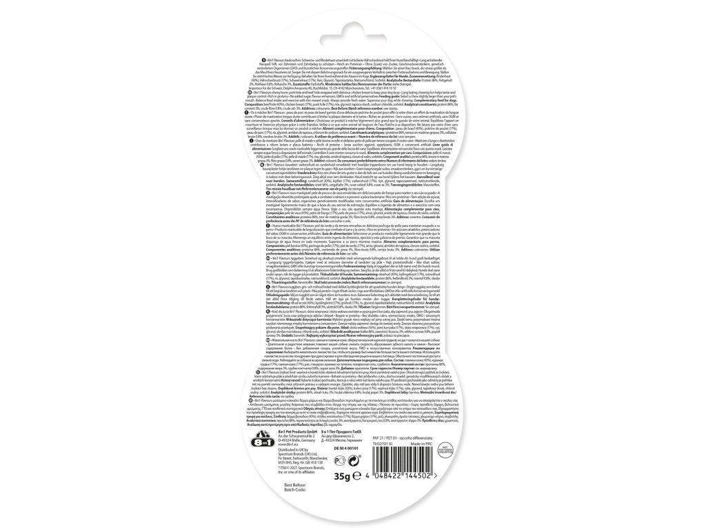 Krmný návod: množství pamlsků upravte s ohledem na fyzickou aktivitu a pravidelný příjem potravy. Vždy zajistěte dostatek čerstvé vody.