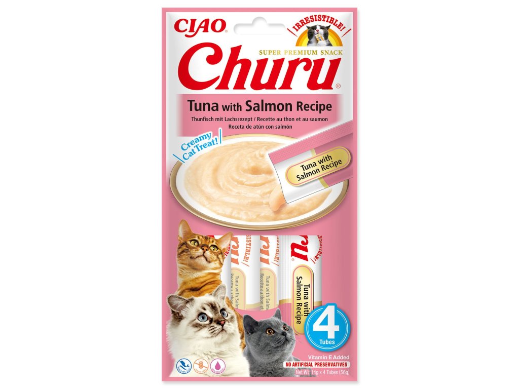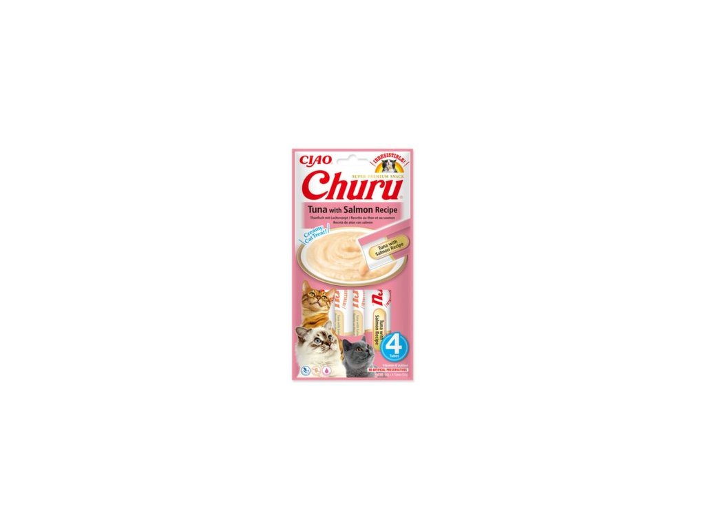 Chutná lízací pochoutka pro kočky v podobě masového pyré z tuňáka a lososa.