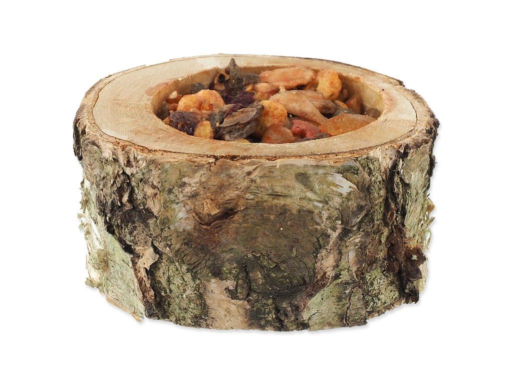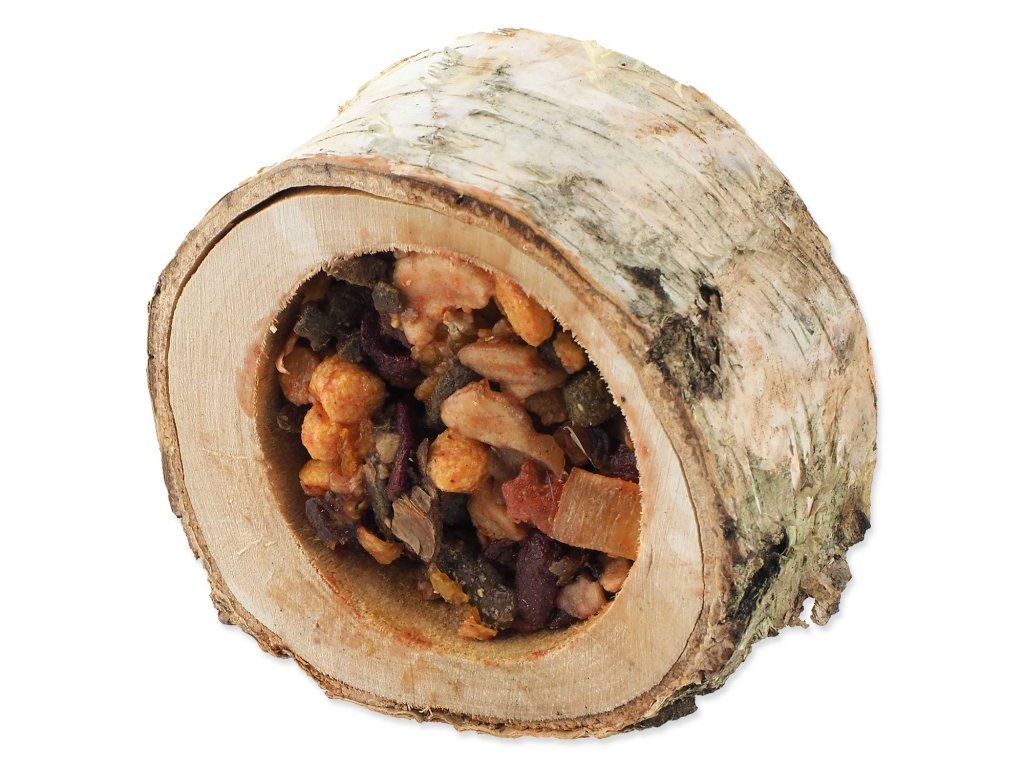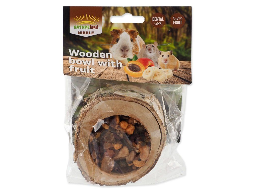Miska ze dřeva listnatých stromů je naplněna ovocnou směsí. Váš mazlíček se při vykusování náplně zabaví a zároveň okus dřeva pomáhá přirozené péči o zuby. Prázdnou misku můžete poté znovu naplnit oblíbeným krmivem vašeho zvířete.