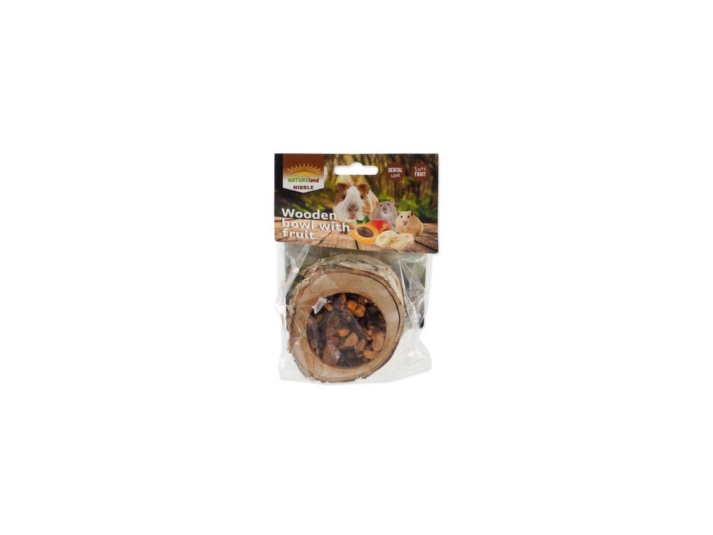 Pochoutka Miska Nature Land Nibble plněná ovocem dřevěná 120g