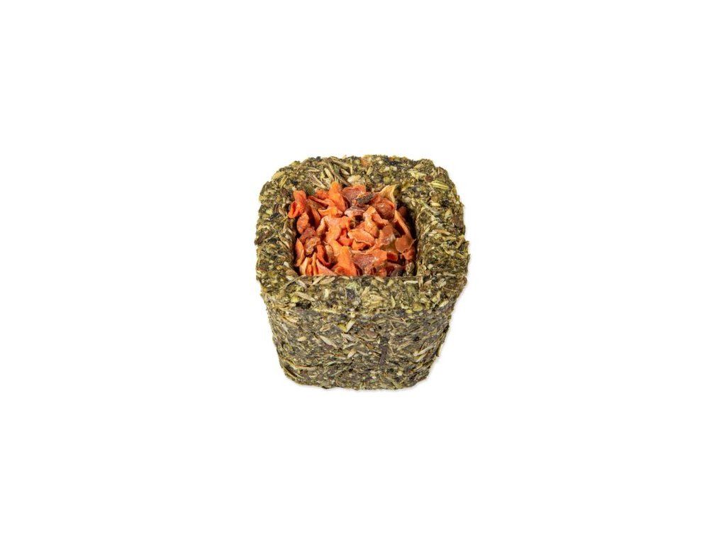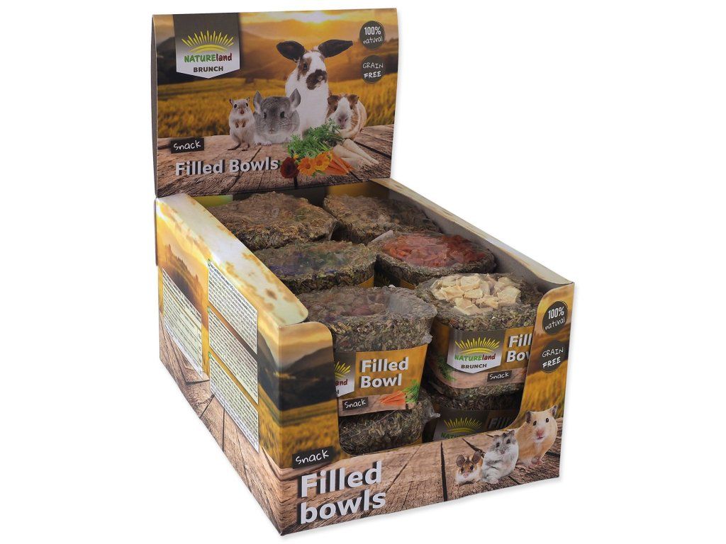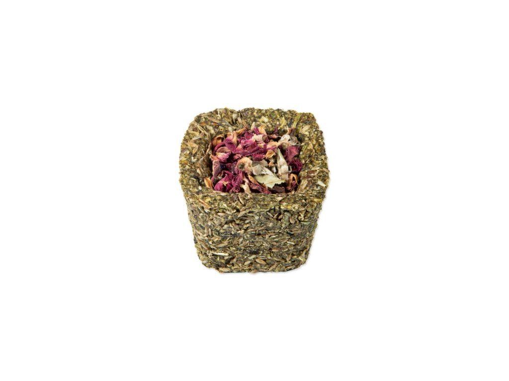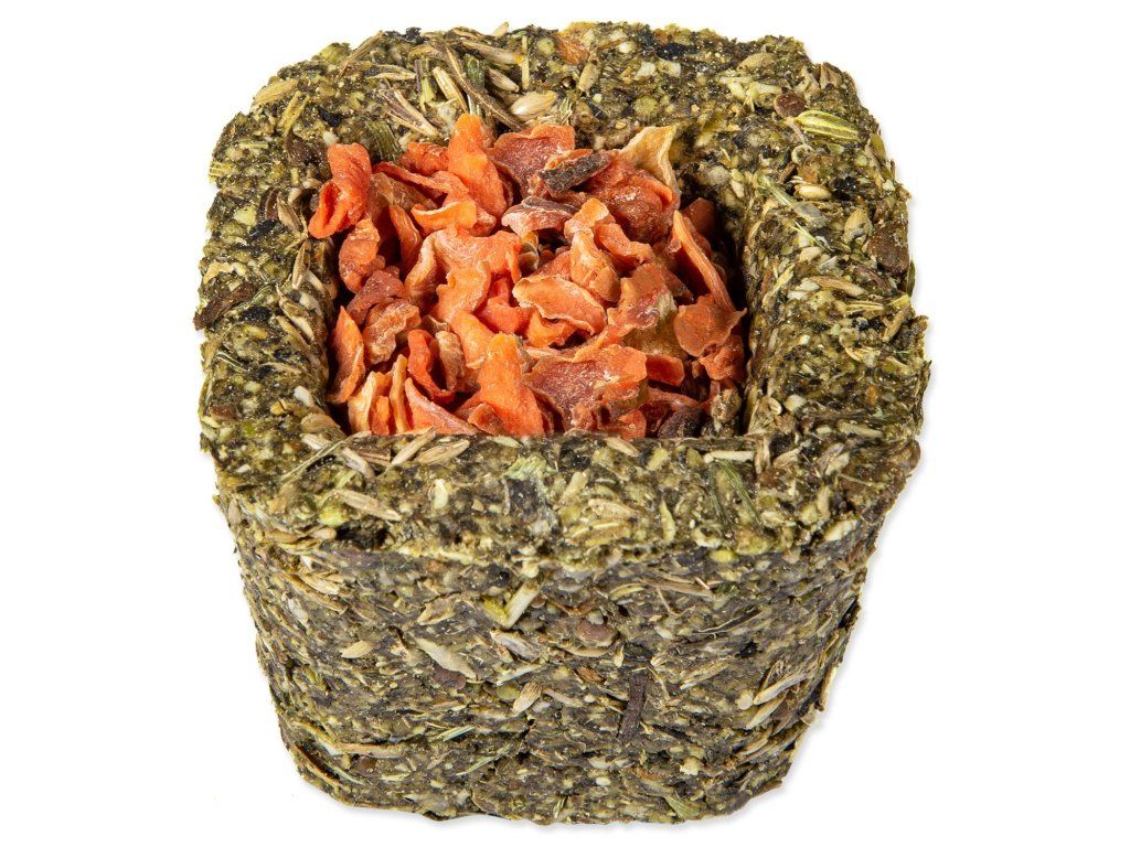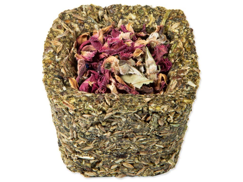 Bezobilné doplňkové krmivo pro králíky a hlodavce. Košíčky plněné sušenou zeleninou nebo okvětními lístky. K výběru jsou 3 druhy sušené zeleniny (mrkev, pastinák, cuketa) a 3 druhy květů (okvětní lístky z růže, květy chrpy a květy z měsíčku lékařského). Díky svému bezobilnému složení a přidaným bylinkám se budou vaši mazlíčci na tyto košíčky vždy těšit a pokaždé je můžete překvapit jinou náplní košíčku.