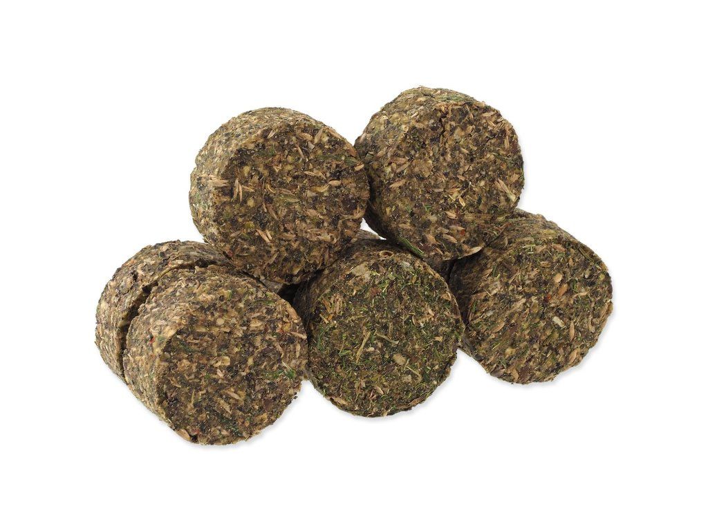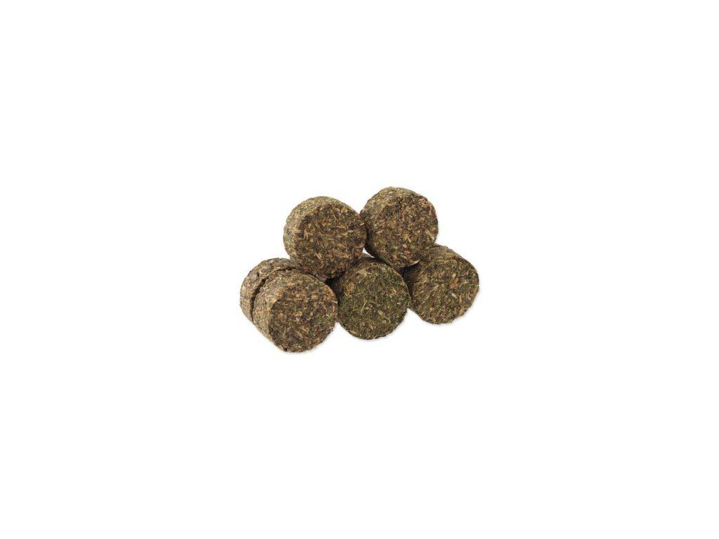 Bezobilné doplňkové krmivo pro králíky a hlodavce obohacené o sušené pampelišky a petržel. Přidané bylinky díky šetrnému procesu sušení zachovaly maximum ze svých pozitivních účinků na organismus zvířat. Petržel je známá díky svému vysokému obsahu vitamínu C. Díky absenci obilnin je tento přírodní pamlsek vhodný také pro králíky a morčata.