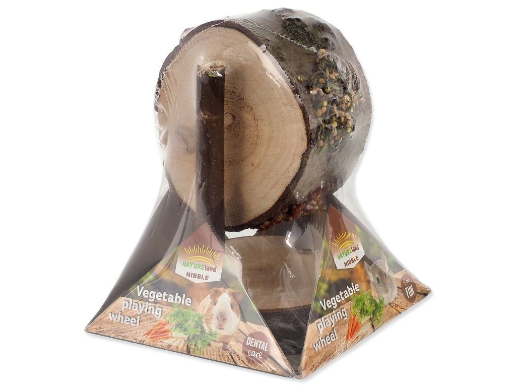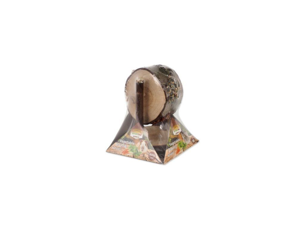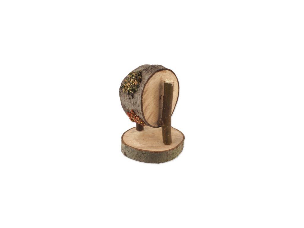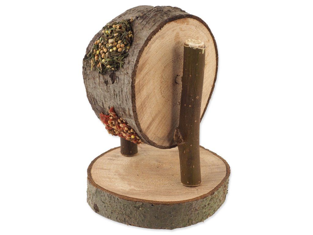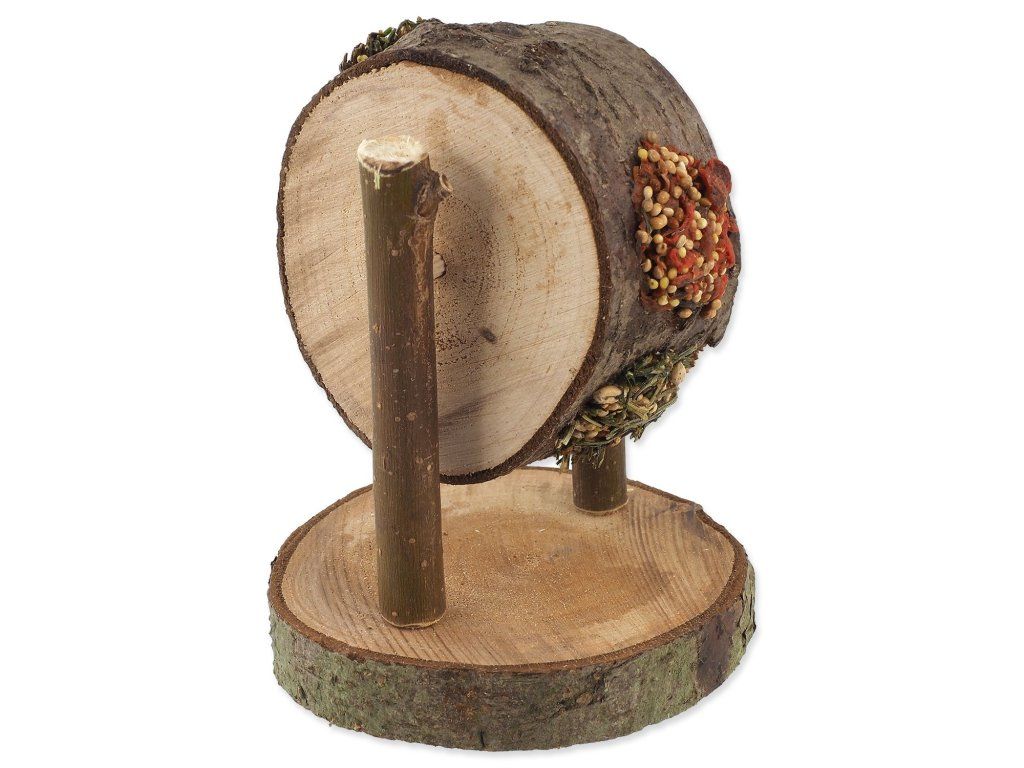 Dřevěné kolo je naplněno chutnou směsí s mrkví a petrželí. Váš mazlíček se při vykusování náplně zabaví a zároveň okus dřeva pomáhá přirozené péči o zuby.