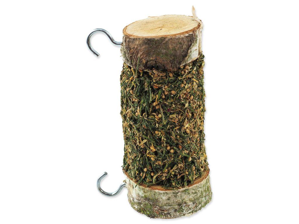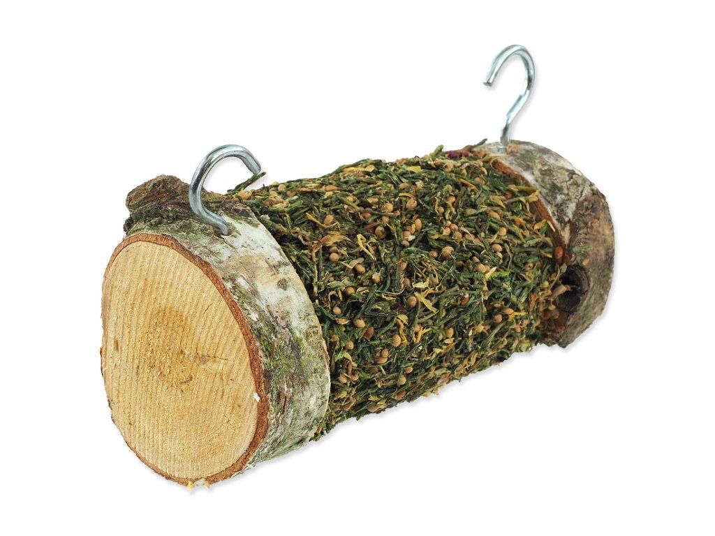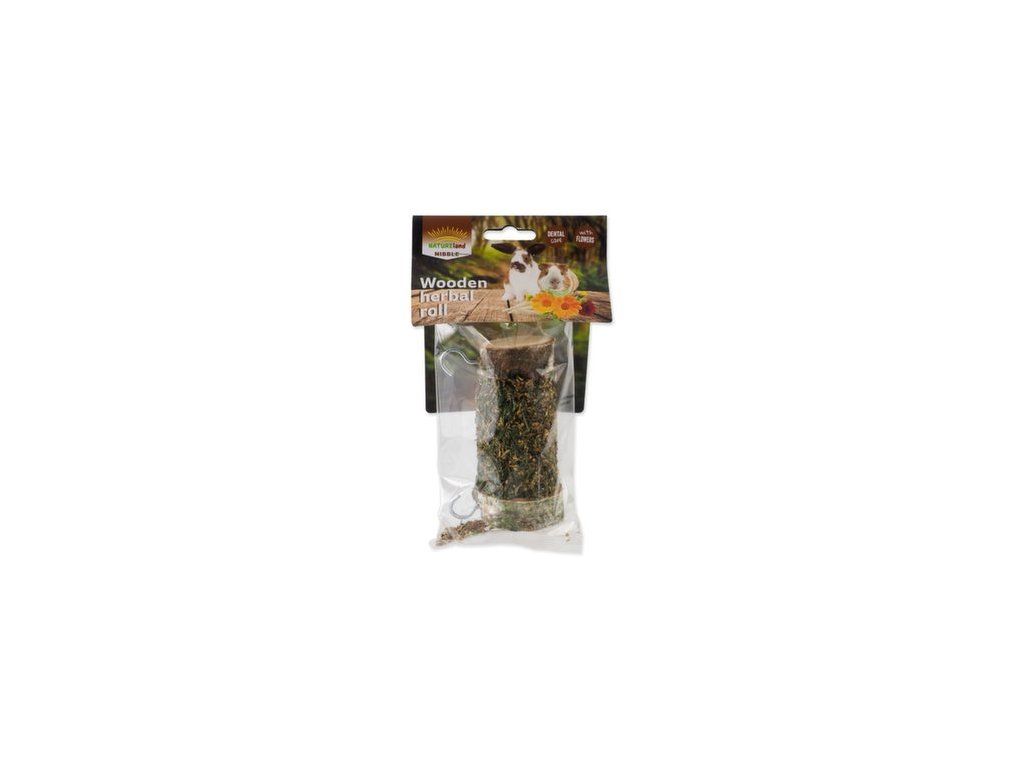 Doplňkové krmivo pro králíky a hlodavce. Válec ze dřeva listnatých stromů je naplněn chutnou směsí s petrželí, okvětními lístky růže a měsíčkem lékařským. Váš mazlíček se při vykusování náplně zabaví a zároveň okus dřeva pomáhá přirozené péči o zuby.