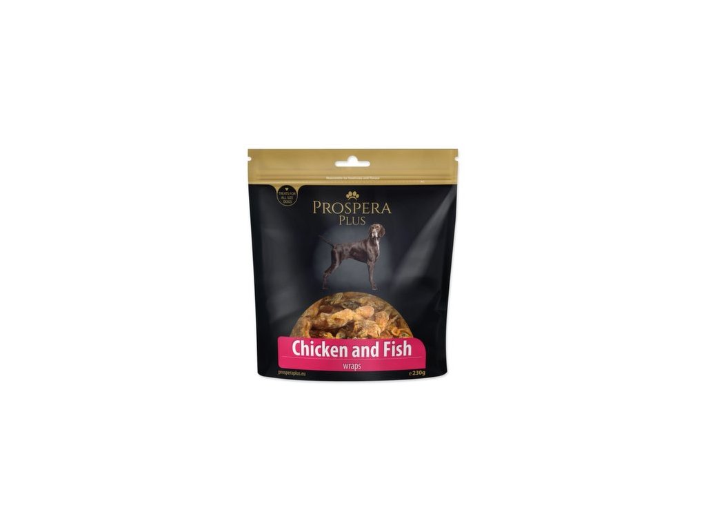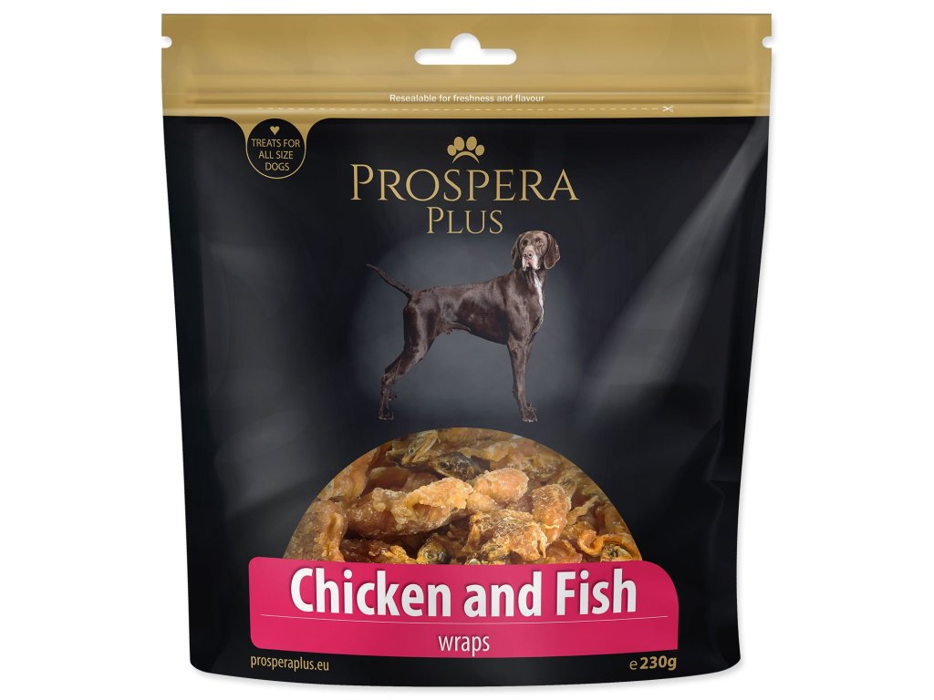 Pochoutka Prospera Plus kuřetem obalené rybičky 230g