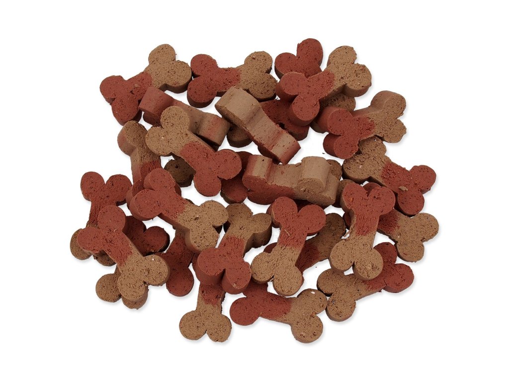 Obiloviny, maso a vedlejší produkty živočišného původu (min. 4 % vepřové), cukry, tuky a oleje, sušená syrovátka, vedlejší produkty rostlinného původu, Aditiva: barvivo, aroma, kalcium 5000 mg/kg (ES přísady). S konzervanty a antioxidanty (ES přísady). Návod ke krmení: slouží jako pochoutka za odměnu k běžné denní krmné dávce. Podávejte 1-2 kusy denně. Vždy zajistěte zvířeti přístup k čerstvé pitné vodě. Skladujte na suchém a chladném místě!