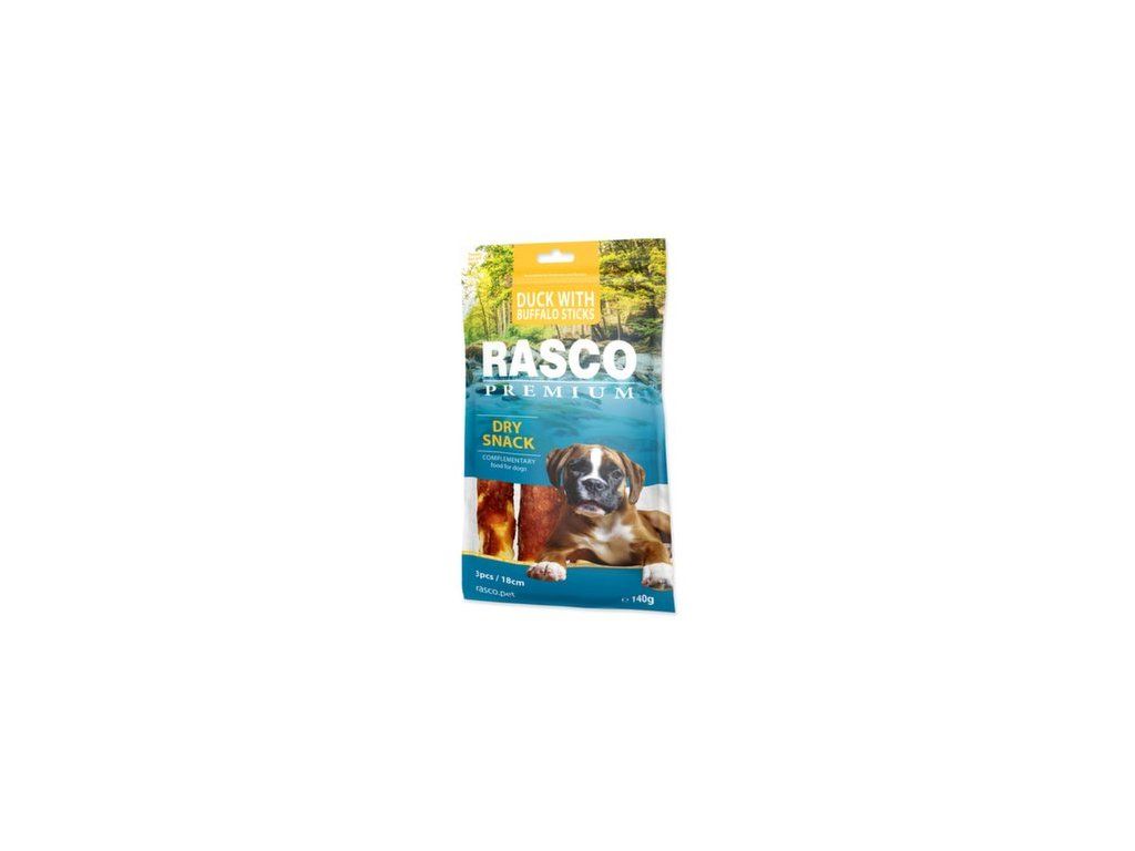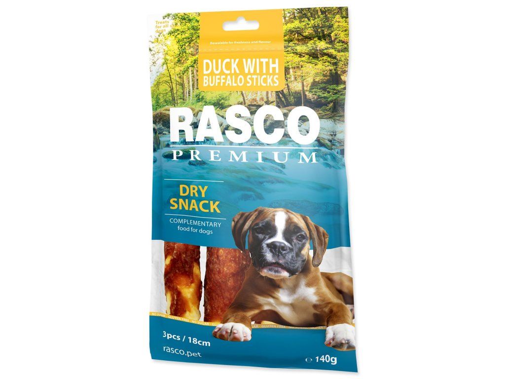 Pochoutka Rasco Premium buvolí kůže obalená kachním, tyčinky 18cm 3x140g