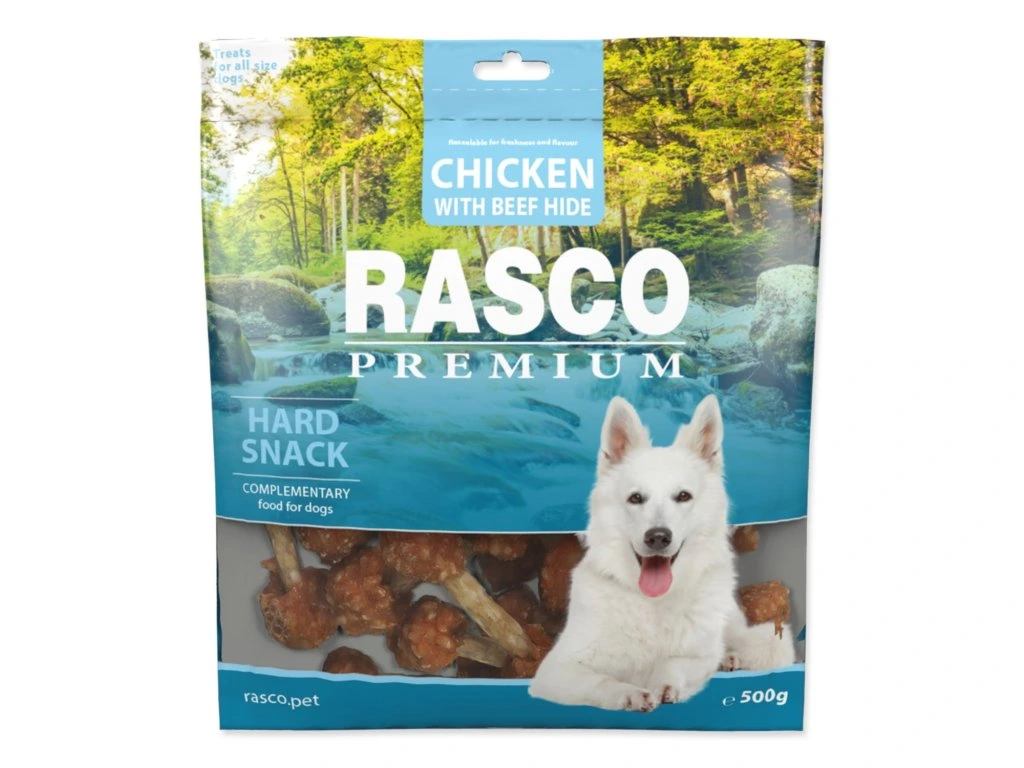 Pochoutka Rasco Premium buvolí kůže obalená kuřecím, paličky 500g