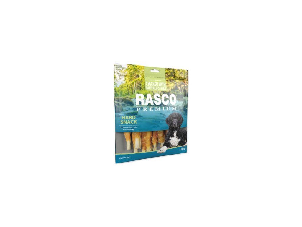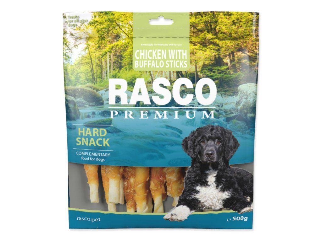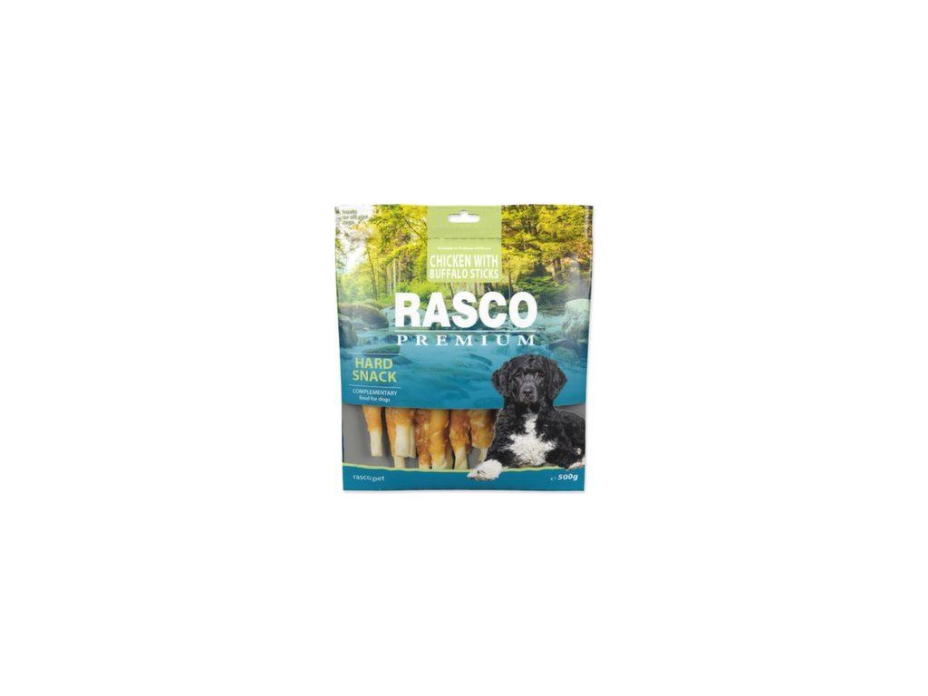 Pochoutka Rasco Premium buvolí kůže obalená kuřecím, tyčinky 500g