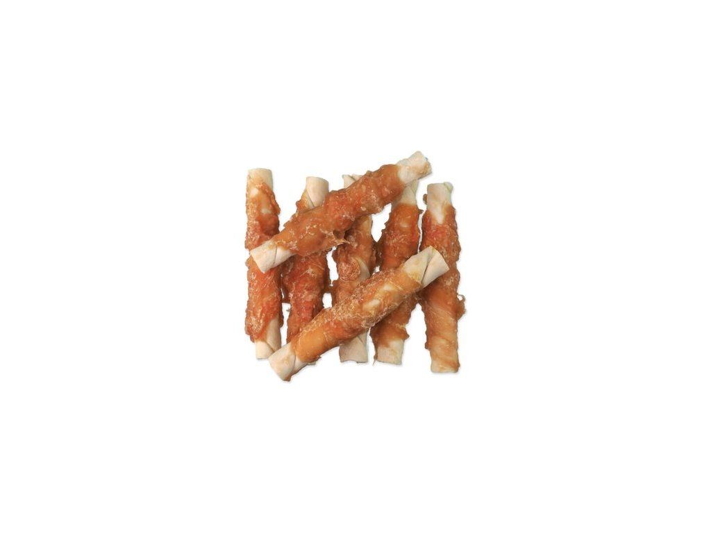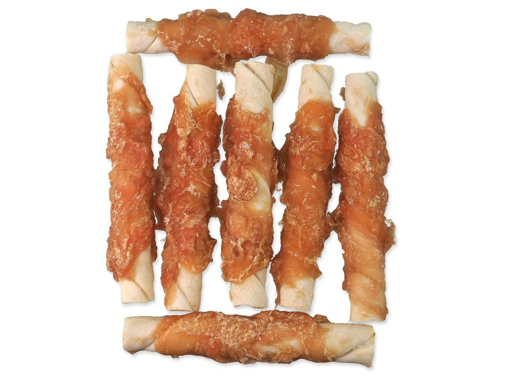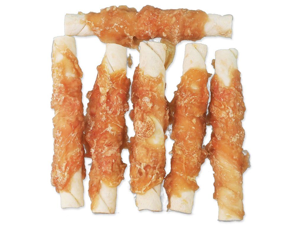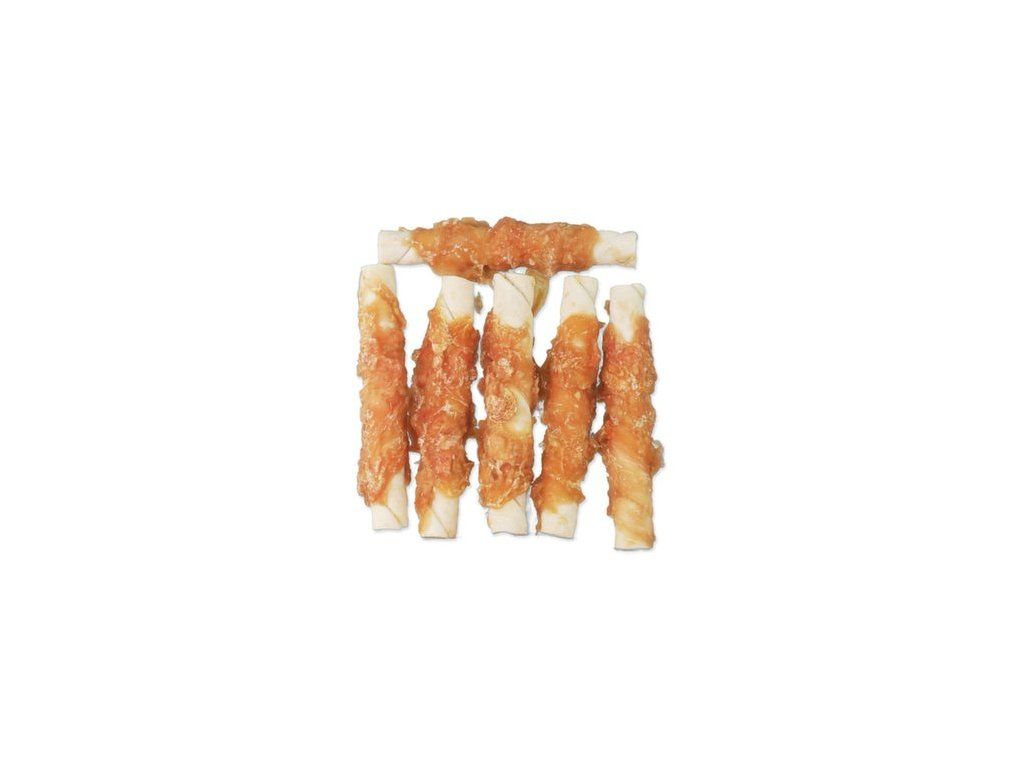 Tyčinky z buvolí kůže obalené kuřecím masem pro střední a velké psy. Doplňkové krmivo, podávejte jako pochoutku.