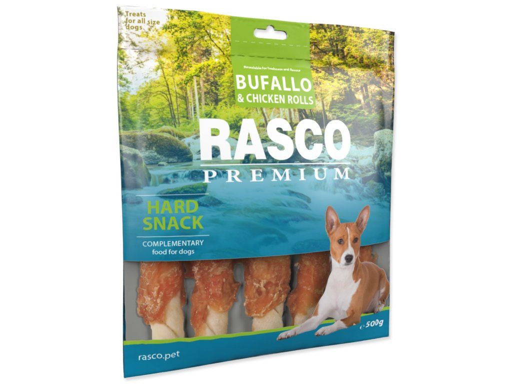 Pochoutka Rasco Premium buvolí kůže obalená kuřecím, tyčinky L 500g