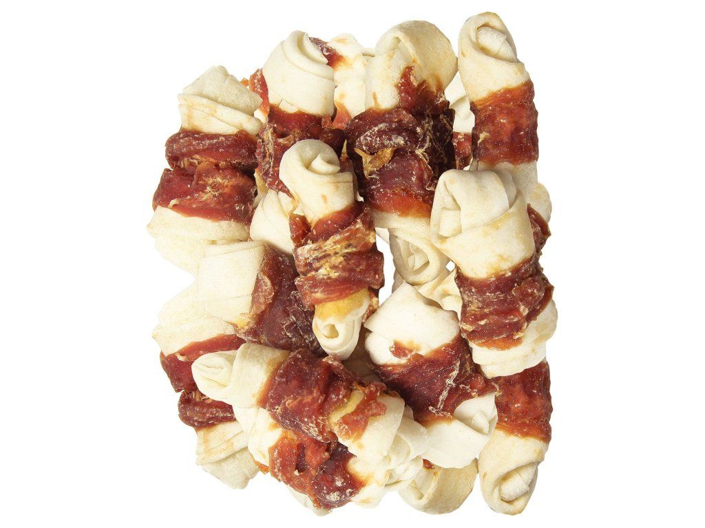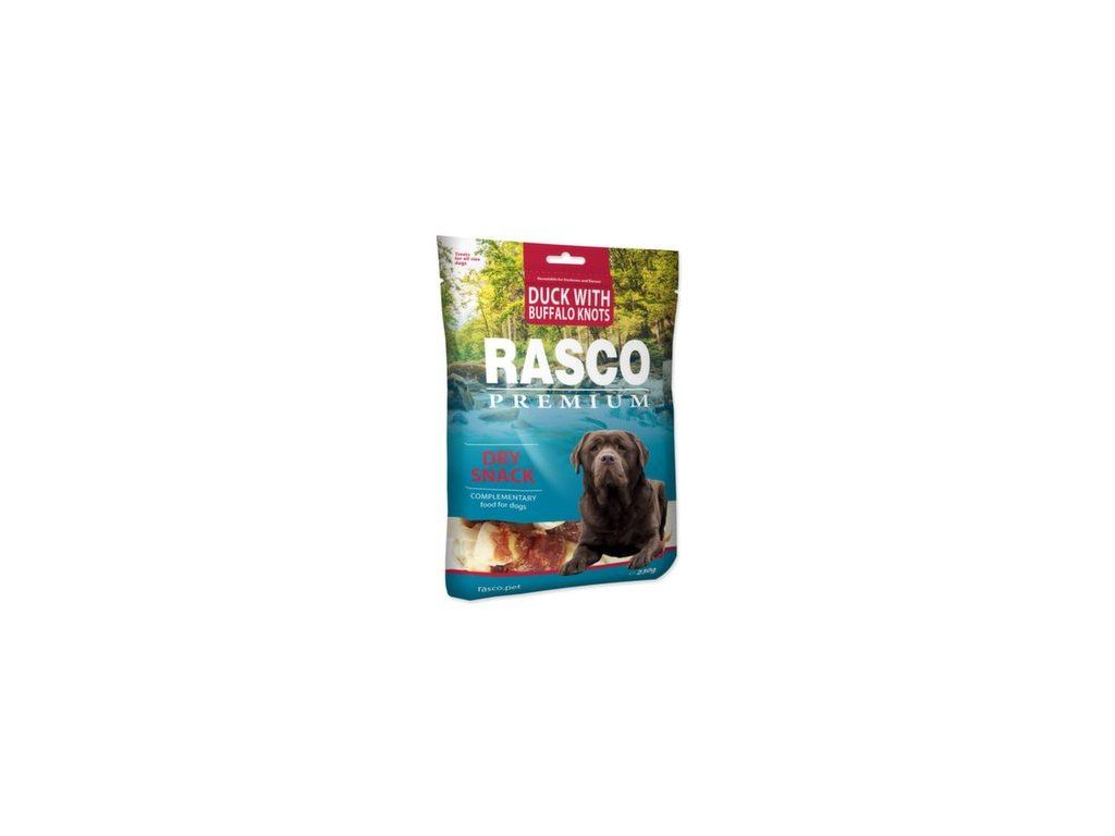 Pochoutka Rasco Premium buvolí kůže s kachním, uzly 5cm 230g