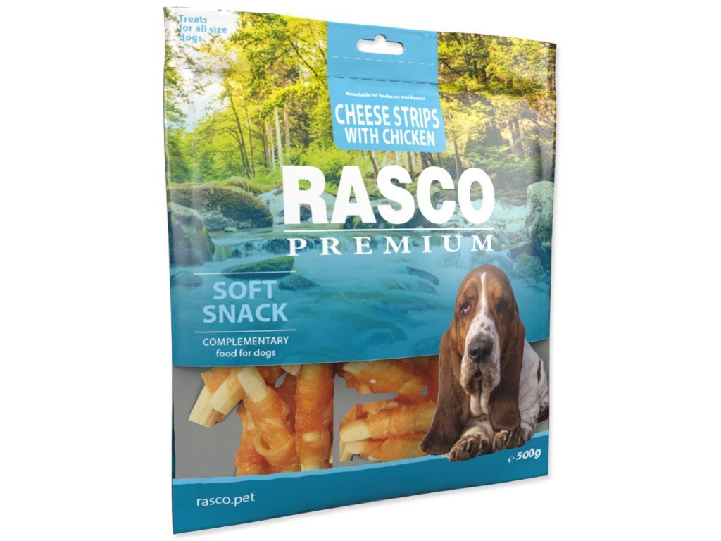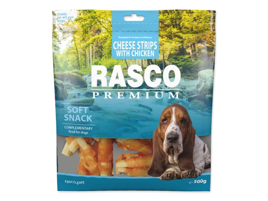Pochoutka Rasco Premium kuřecím obalené sýrové proužky 500g