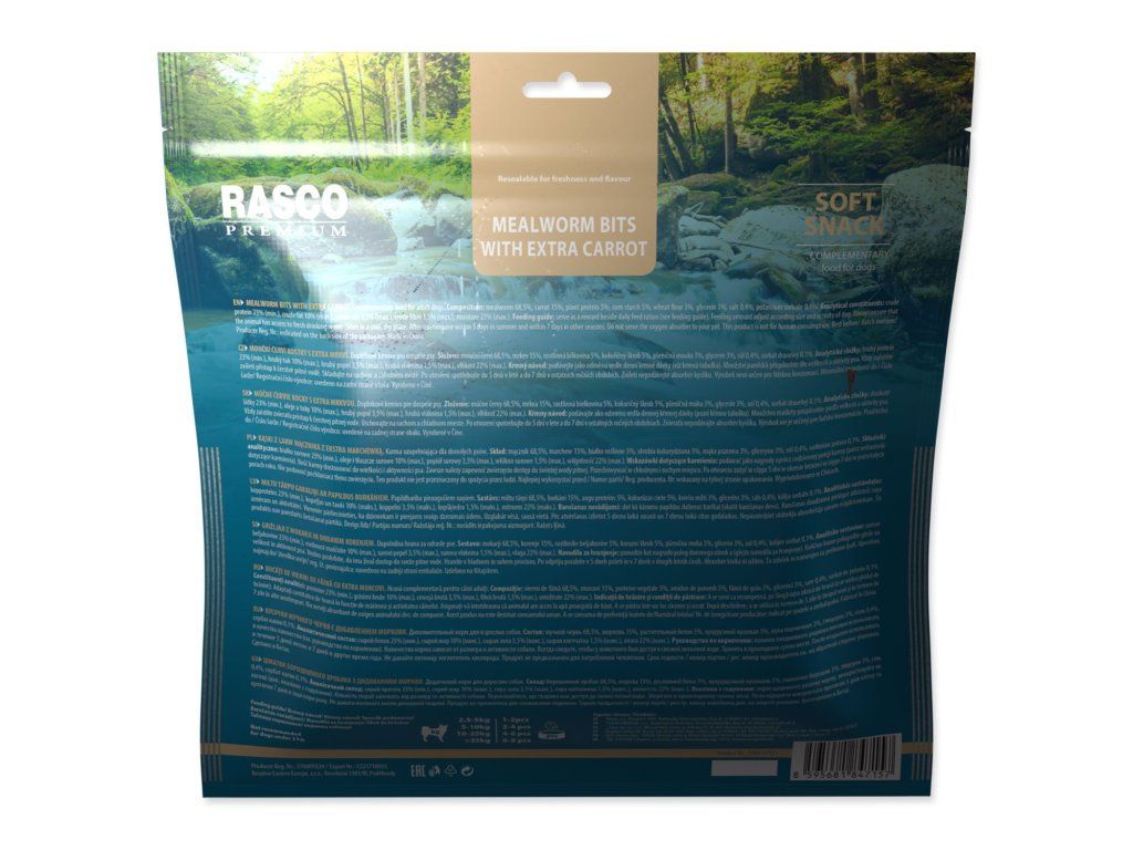 Pochoutka Rasco Premium mouční červi a extra mrkví 500g