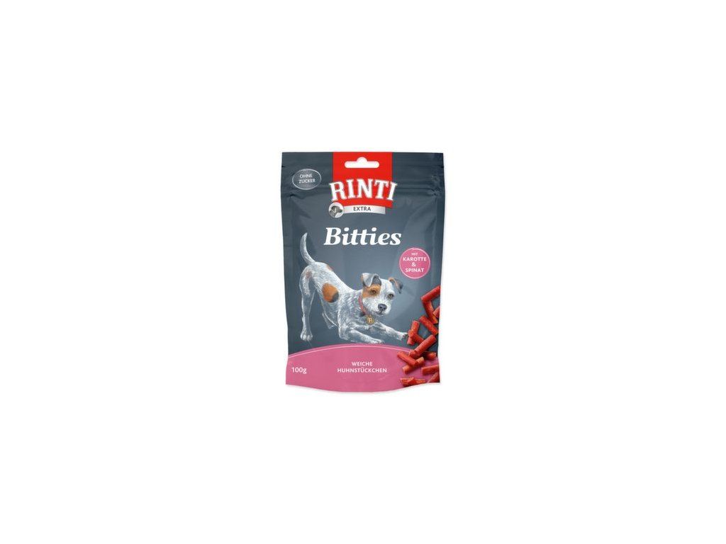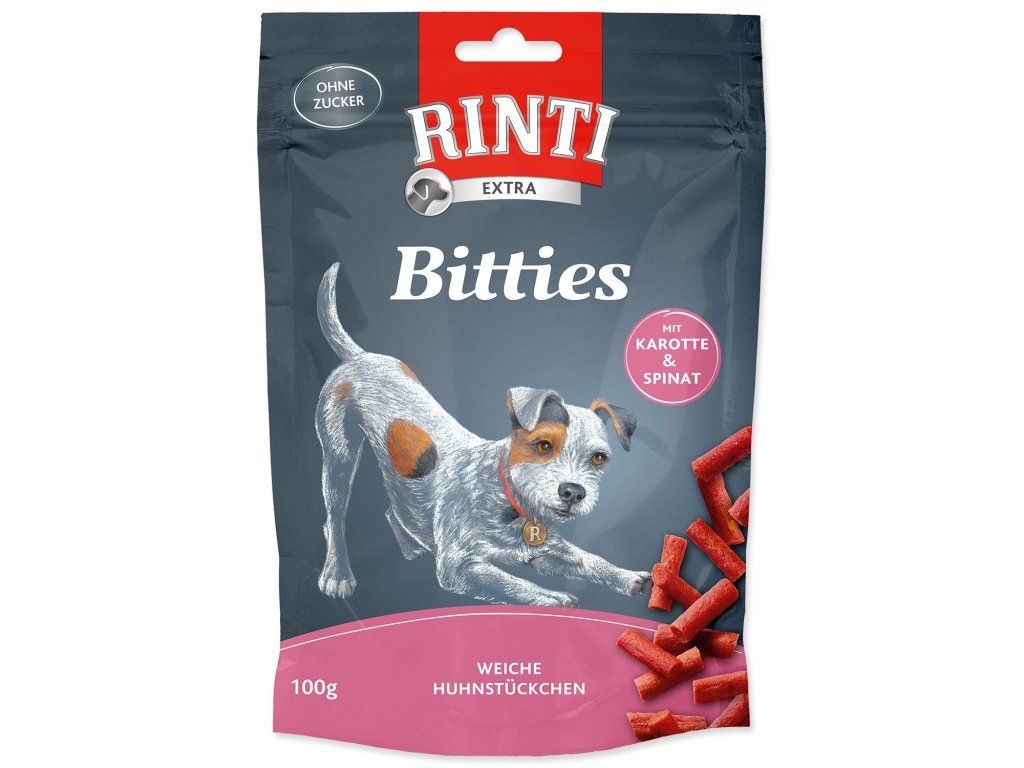 Pochoutka Rinti Bitties kuře s karotkou a špenátem 100g