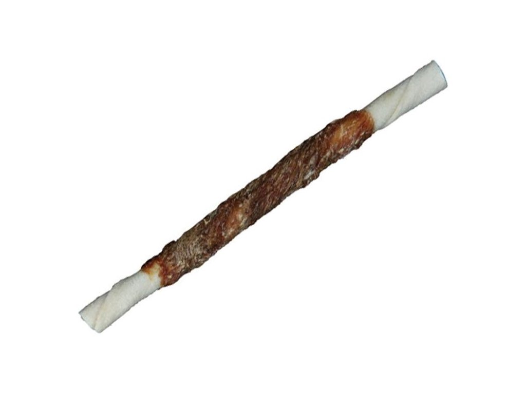 Žvýkací tyčinka pro psy z hovězí kůže obalená kachními prsíčky. Podávejte jako pamlsek nebo odměnu. Udržuje zdravé zuby a svěží dech. Žvýkáním si pes posiluje žvýkací svaly a zároveň se zabaví na dlouhou dobu.