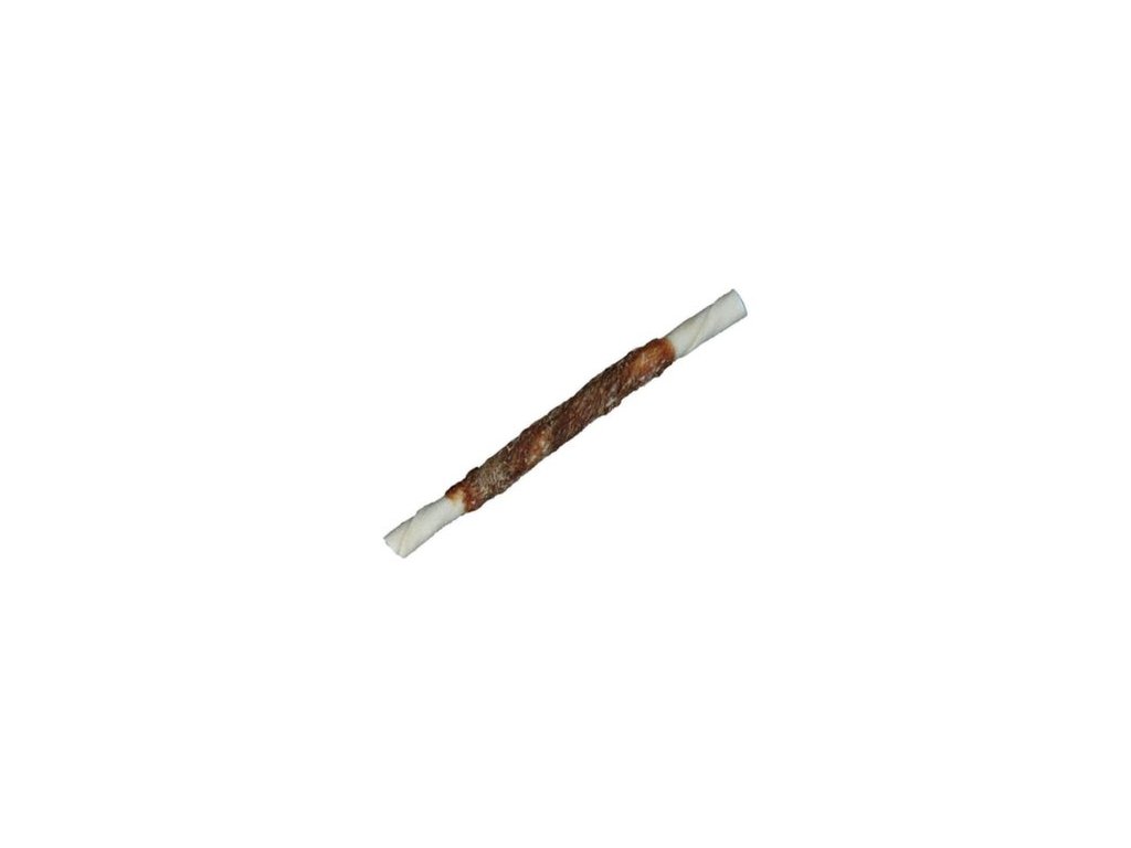 Žvýkací tyčinka pro psy z hovězí kůže obalená kachními prsíčky. Podávejte jako pamlsek nebo odměnu. Udržuje zdravé zuby a svěží dech. Žvýkáním si pes posiluje žvýkací svaly a zároveň se zabaví na dlouhou dobu.