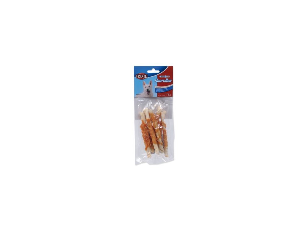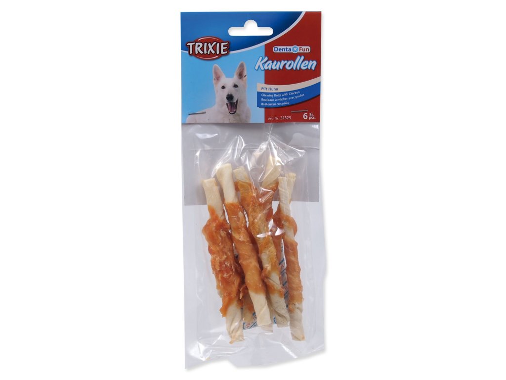 Pochoutka Trixie DentaFun buvolí kůže obalená kuřecím, rolky 12cm 70g