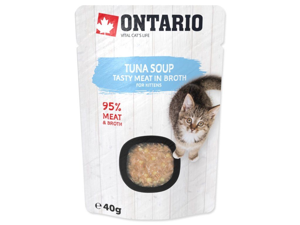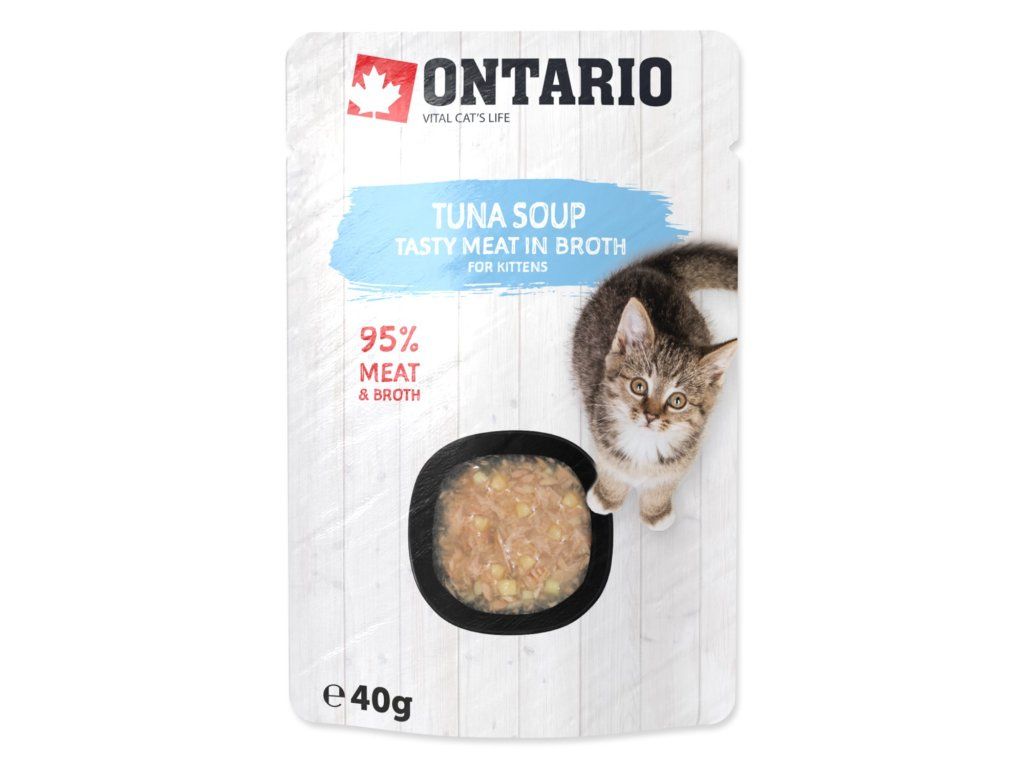 Doplňkové krmivo pro koťata – polévka s kousky tuňáka, kterou můžete dopřát samostatně mebo jako doplněk k suchému krmivu.