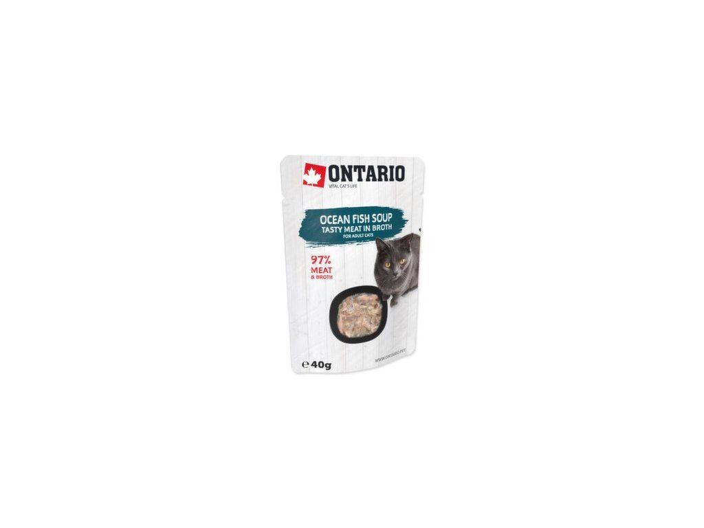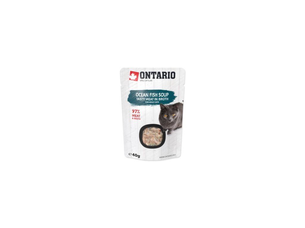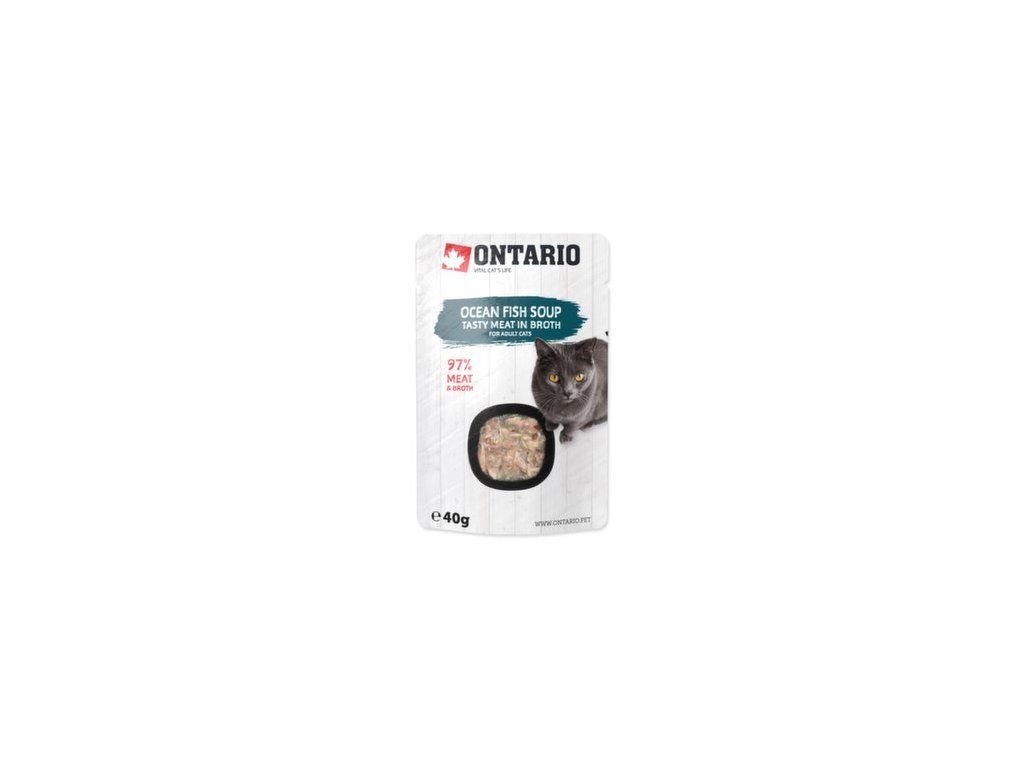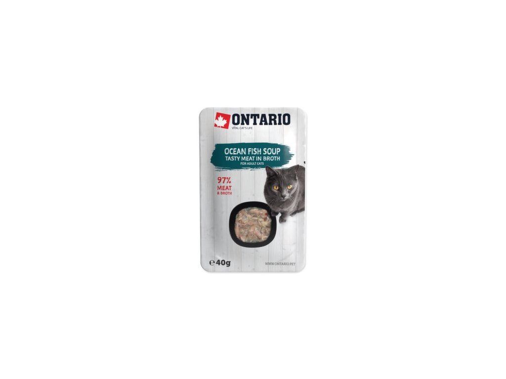 Doplňkové krmivo pro dospělé kočky – polévka s kousky makrely a tuňáka, kterou můžete dopřát samostatně nebo jako doplněk k suchému krmivu.