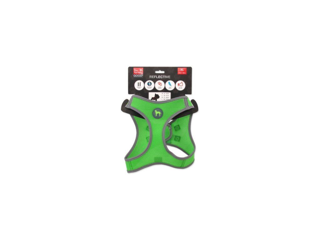 - Po obvodu celého postroje jsou všité reflexní prvky pro bezpečný pohyb zvířete.