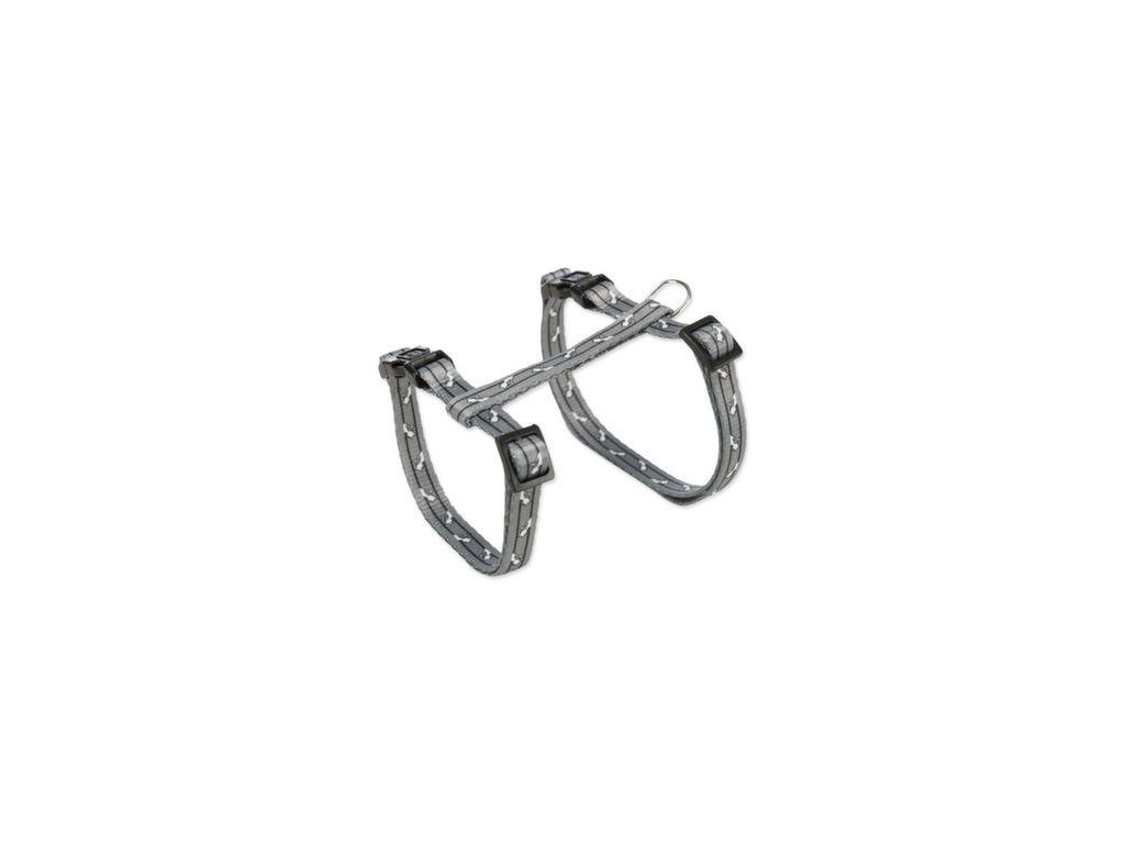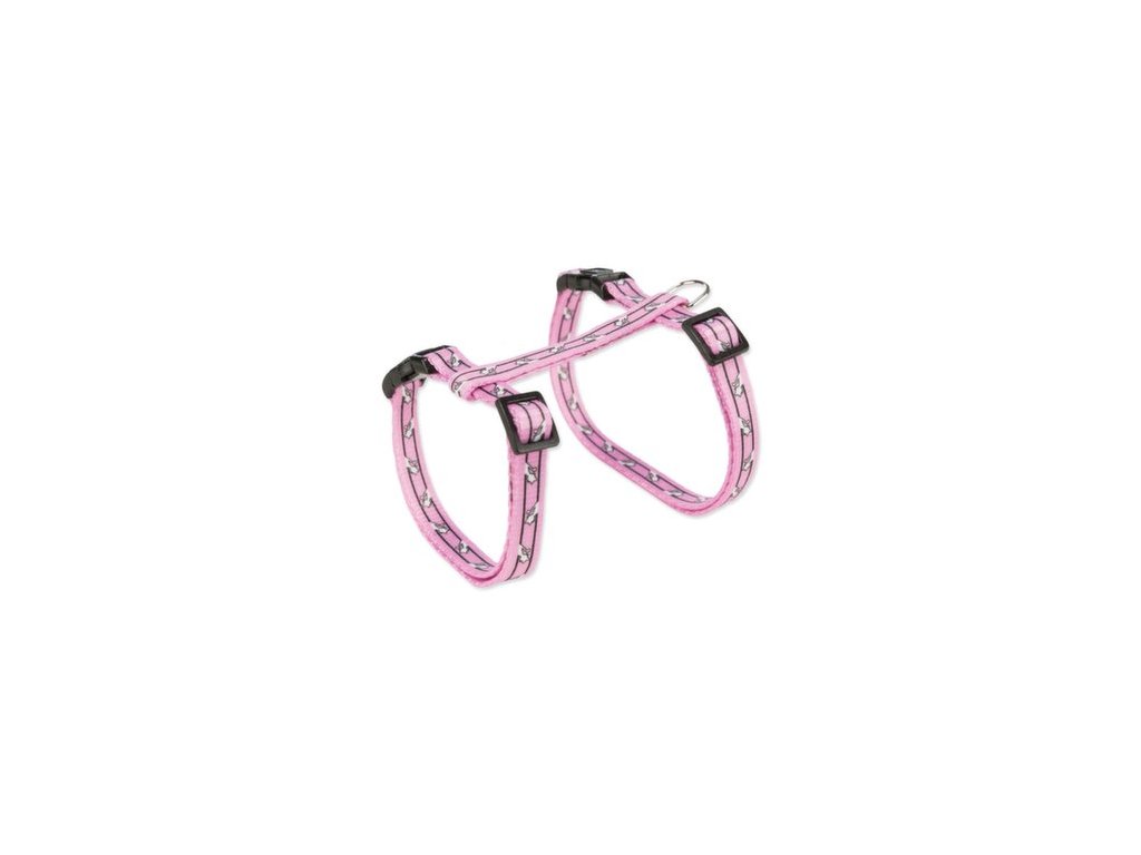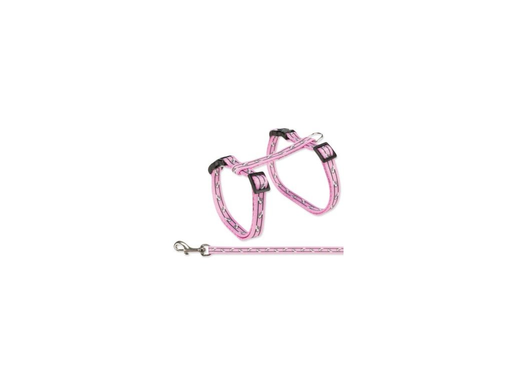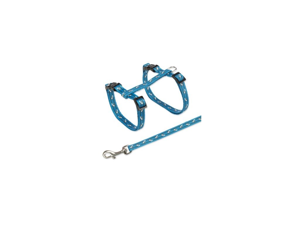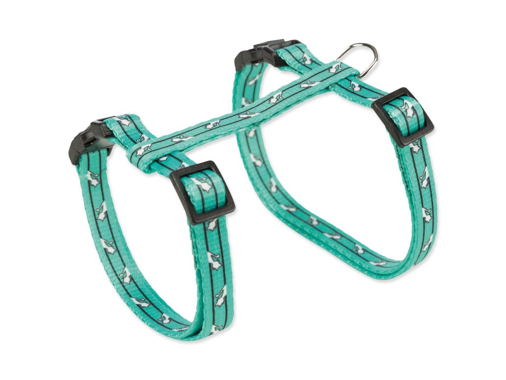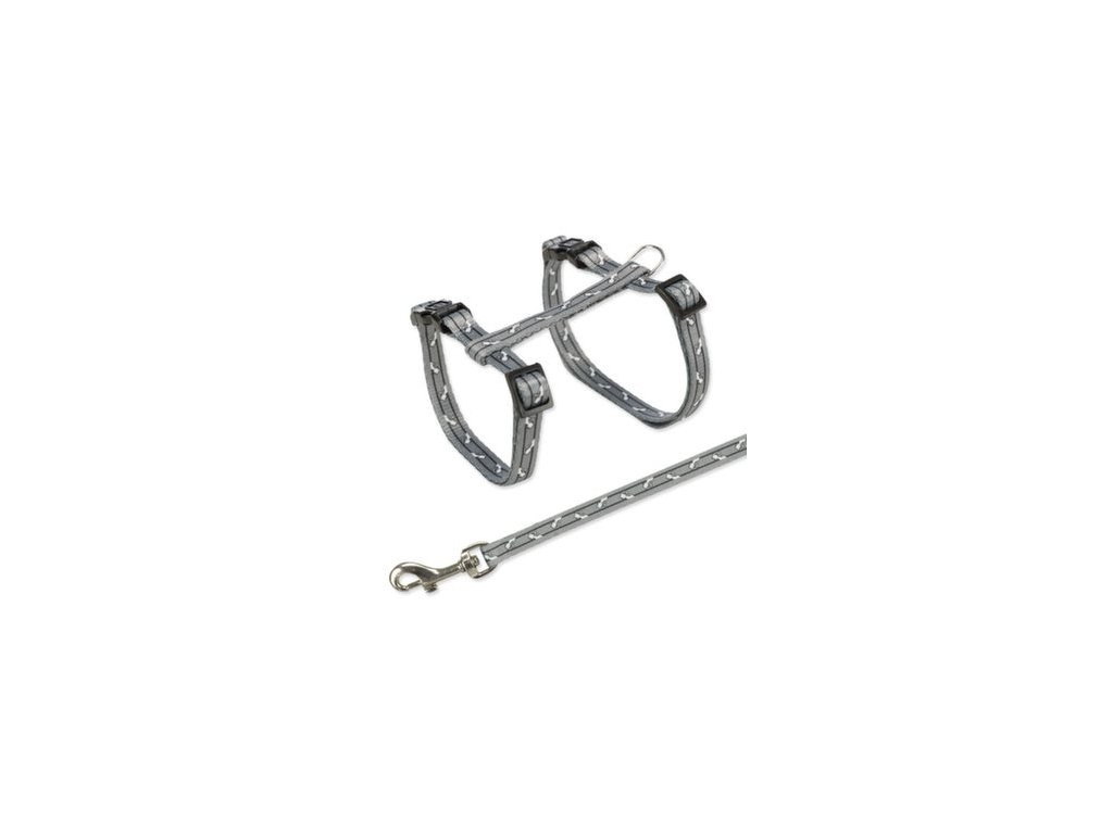 Postroj s vodítkem pro kočky milující procházky. Je vyroben z nylonu. Zvyšuje bezpečnost a předchází úrazům. Zapínání pomocí rychlospony.