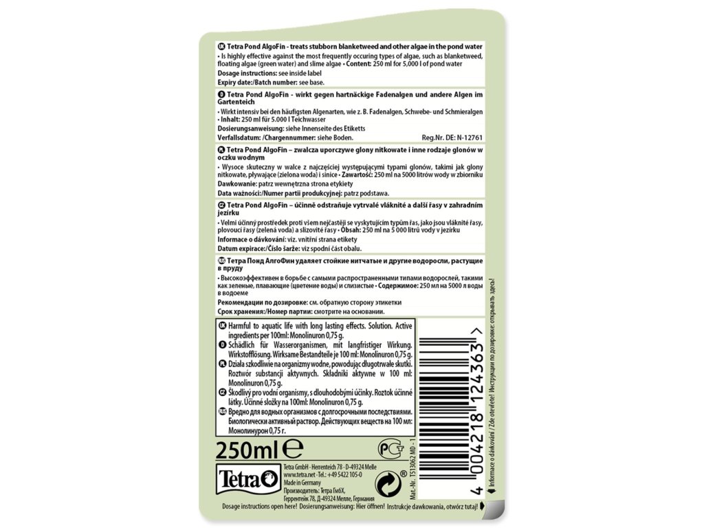 Růst řas může narušit biologickou rovnováhu v nádrži a způsobit nepříjemný vzhled. Algofin vytváří takové biologické podmínky, za kterých je zamezeno rozmnožování řas. Udržuje čistou vodu v zahradních nádržích.