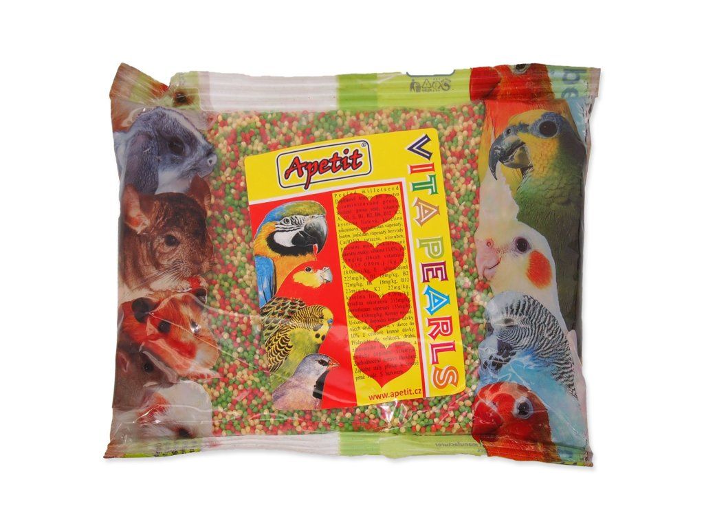 Složení: loupané proso, vitamín A, D3, E, B1, B2, B6, B12, K3, kyselina listová, kyselina nikotinová, pantothenan vápenatý, biotin, jodičnan vápenatý bezvodý.