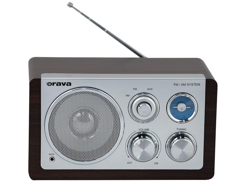 Retro rádio je osazeno v dřevěné ozvučnici. I díky ní vypadá atraktivně, až se ho máme chuť dotknout a setřít z něj i tu nejmenší částečku prachu.