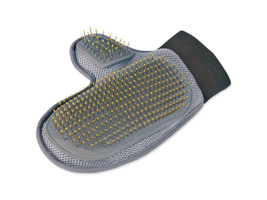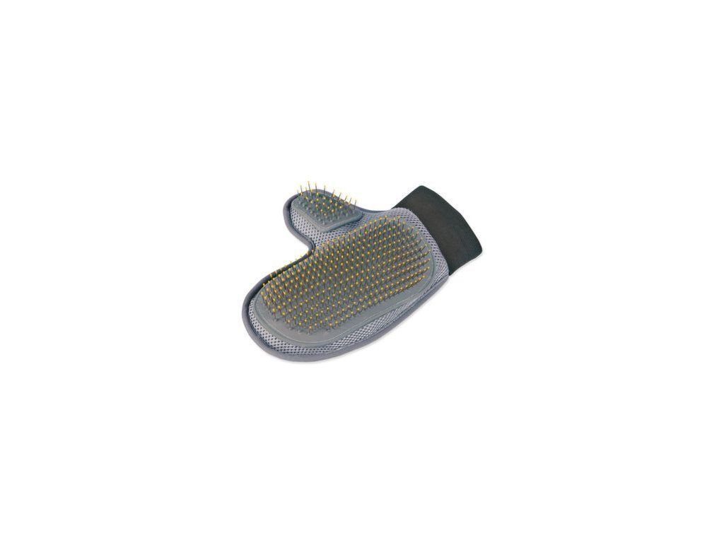 Vyčesávací rukavice s drátěnými zuby. Vhodný pomocník pro snadné vyčesávání vylínalé srsti koček a psů.