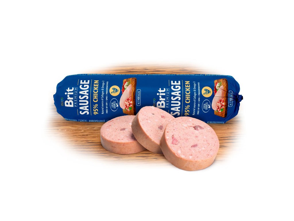 Brit Premium Sausage je kompletní krmivo pro psy, nebo ideální doplněk ke granulím, BARF stravě a vařenému masu. Vhodné pro psy s citlivým trávením.