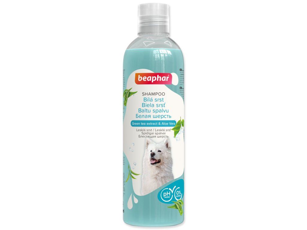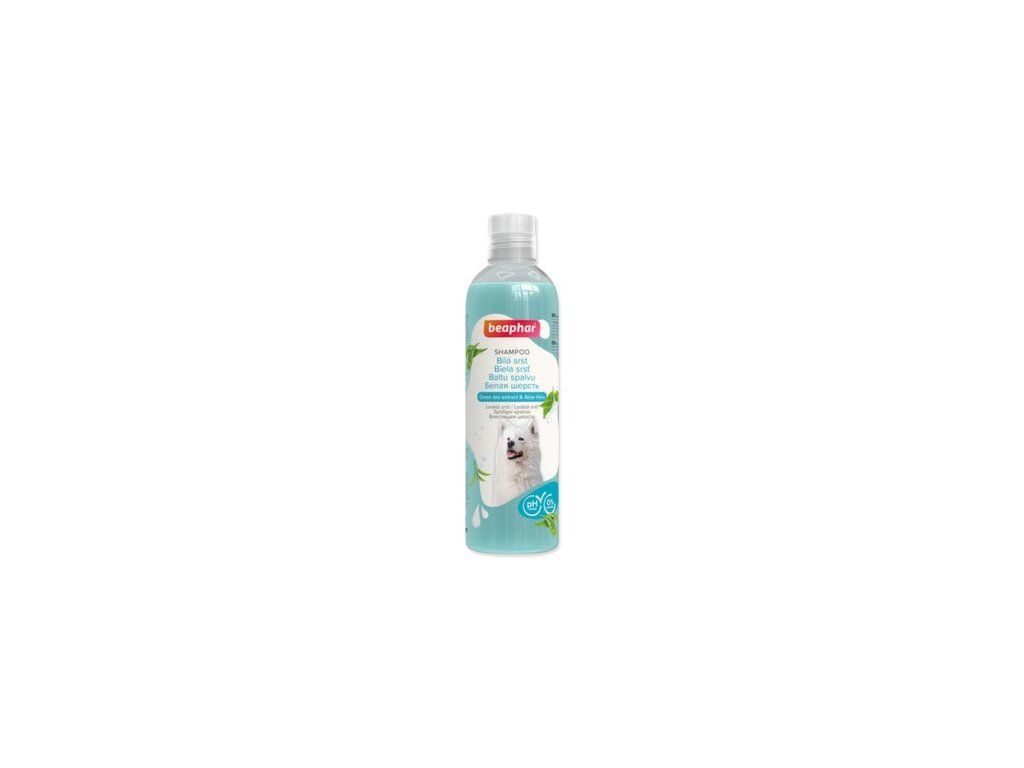 Beaphar šampon na bílou srst je jemný pH neutrální šampon speciálně vyvinutý pro bílé a světle zbarvené psy. Šampon je obohacen o extrakt ze zeleného čaje a aloe vera, udržuje srst jemnou a lesklou a podporuje její přirozenou bílou barvu. Váš pes bude vonět čistotou a svěžestí.