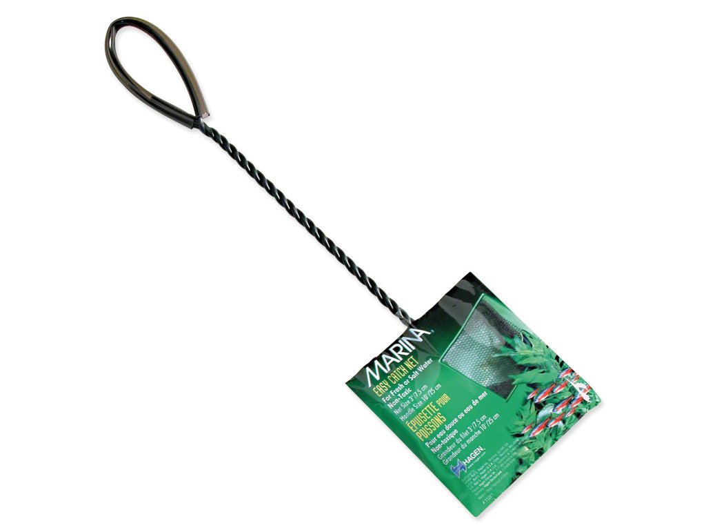 Jemná akvarijní síťka. Velikost: 7,5 x 6,3 cm, délka 25 cm.