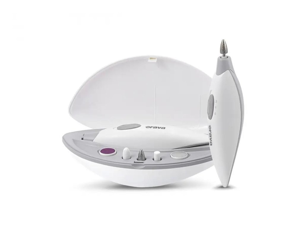Manikúrní a pedikérská souprava Orava Lyra má k dispozici až 5 násad s různými povrchy. Plstěná násada je vhodná na leštění nehtů, brusný váleček z bílého korundu je určen na zkracování a tvarování akrylových i přírodních nehtů, diamantová bruska s karbidem křemíku výborně poslouží na odstraňování nehtové kůžičky na bocích a na vrchu nehtů, niklovou brusku oceníte při detailním opilování nehtů a bruska na brusný papír vám pomůže efektivně odstranit zrohovatělou kůži na chodidlech.