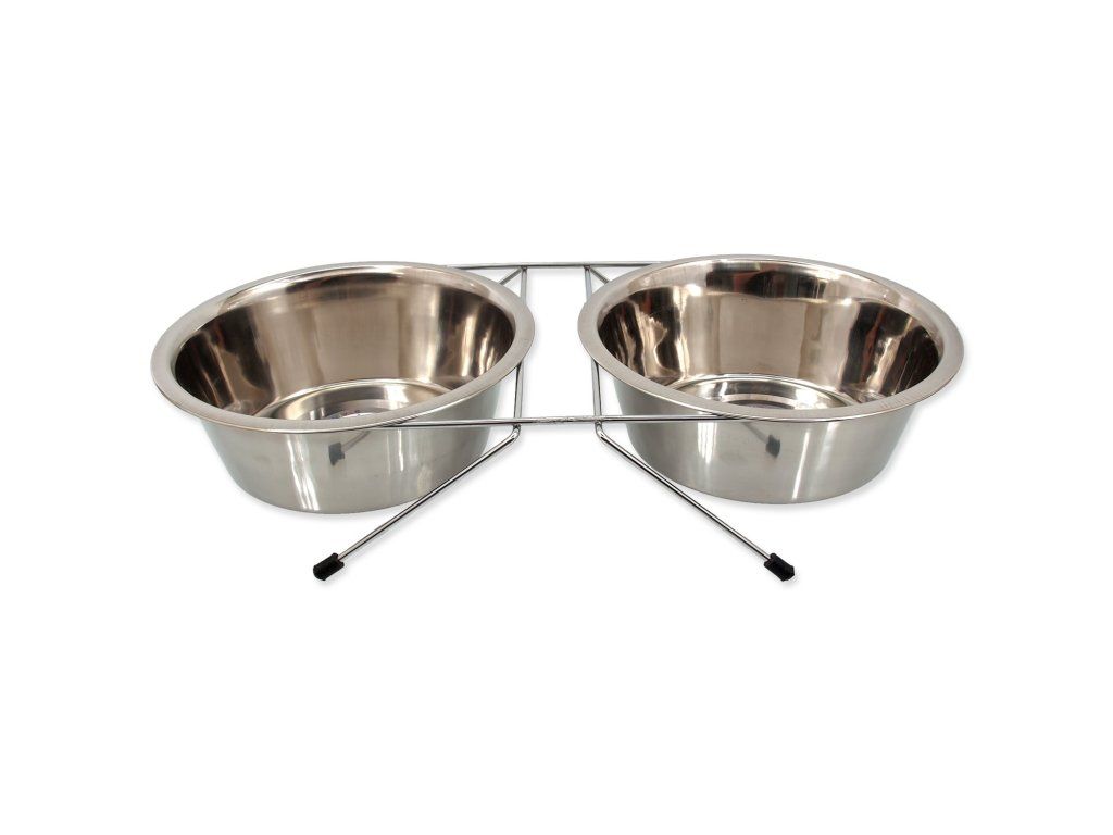Nerezové misky ve stojánku pro malé psy a kočky.