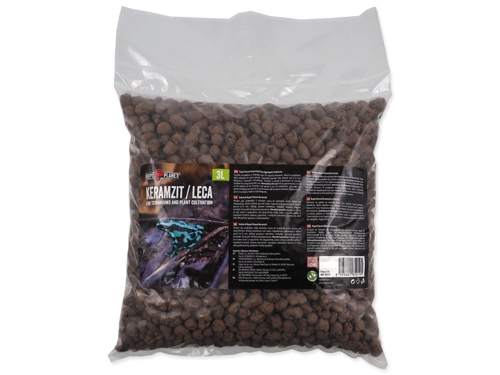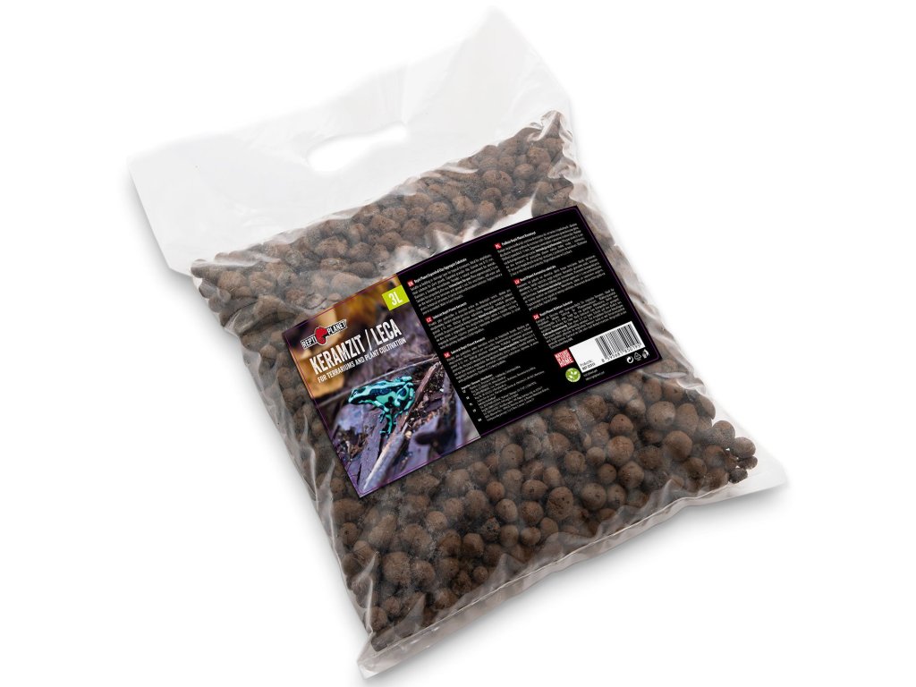 - Jedná se o expandovaný granulovaný jíl. Velikost granulí se pohybuje kolem 8-15 mm. Udržuje příznivé mikroklima. Poskytuje zvířatům přirozené prostředí. Po použití vhodný ke kompostování.