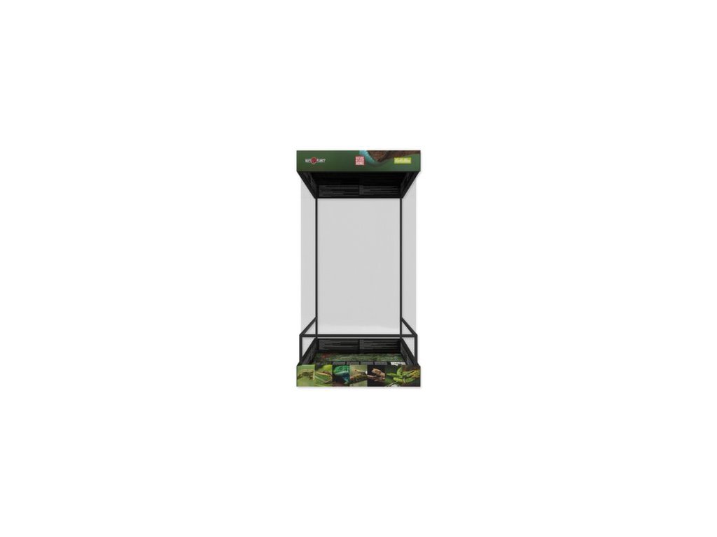 Terária jsou vybavena horním a spodním plastovým rámečkem, který umožňuje stohování terárií a umístění topných desek přímo na vnější stranu spodní skla.