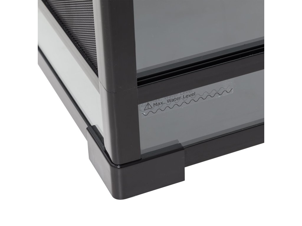 Terária jsou vybavena horním a spodním plastovým rámečkem, který umožňuje stohování terárií a umístění topných desek přímo na vnější stranu spodní skla.