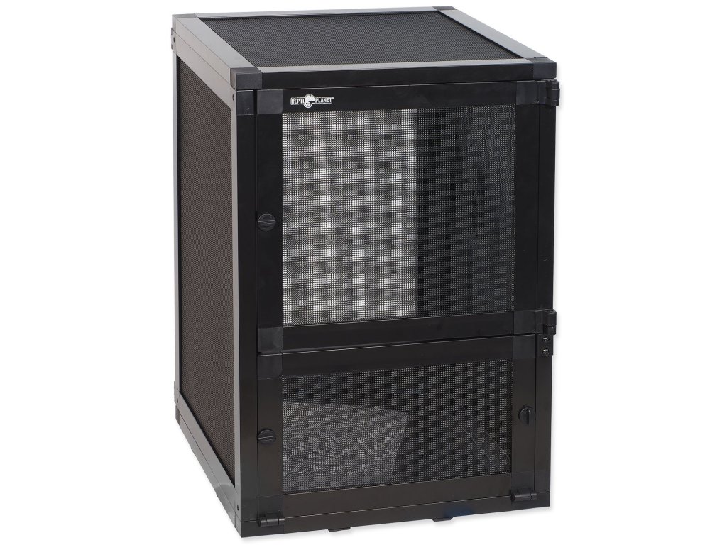 Síť na všech stranách terária (včetně přední a zadní stěny) zajišťuje maximální možnou ventilaci a přístup čerstvého vzduchu (vhodné pro horské chameleony, abronie a mnoho dalších plazů a obojživelníků).