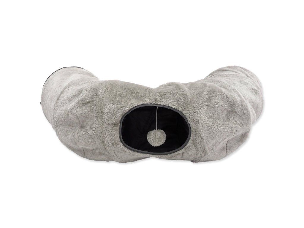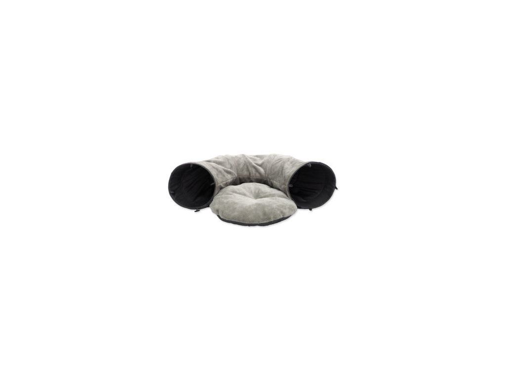 Tunel Magic Cat plyš tvar U s polštářkem šedý 95x26cm