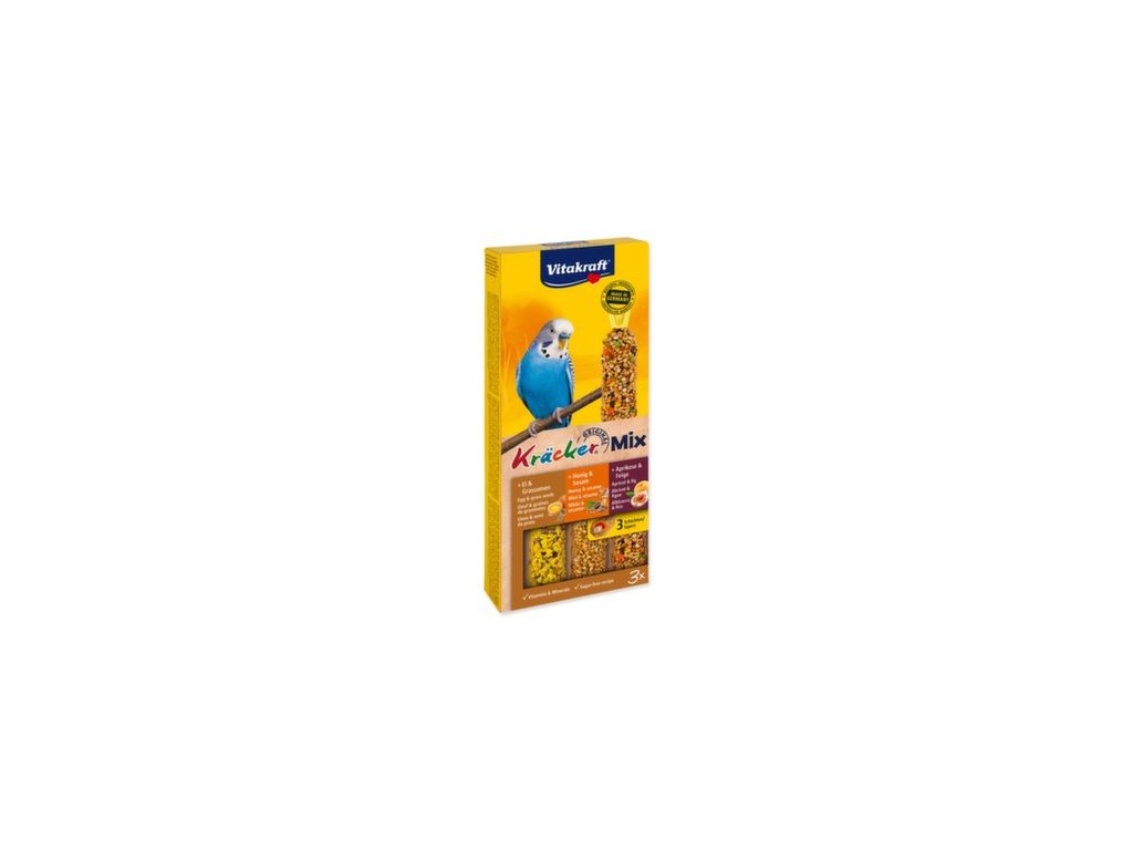 Tyčinky Vitakraft Kracker Trio Mix andulka, s vejci, medem a meruňkami 3ks