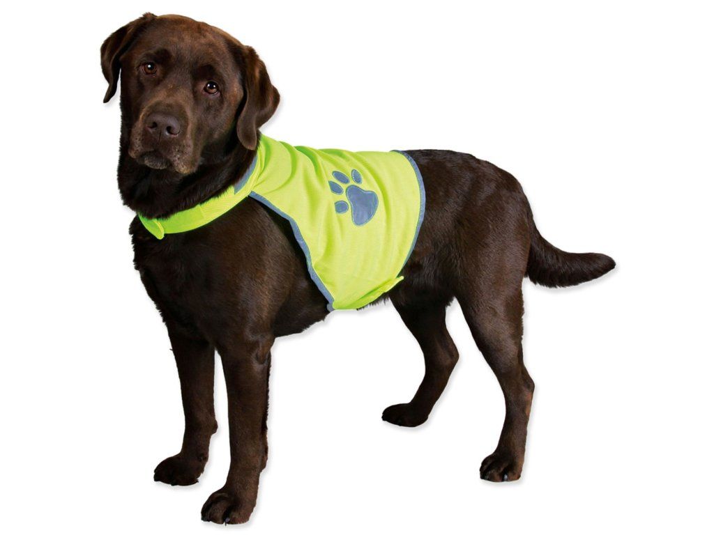 Bezpečností vesta pro psy vyrobená z polyesteru. Tato vesta zajistí bezpečné venčení vašeho psa především za tmy a ze šera. Obšitá reflexním páskem s potiskem tlapky. Plynule nastavitelné na břiše a krku se zapínáním na suchý zip. Neomezuje psa v pohybu.
