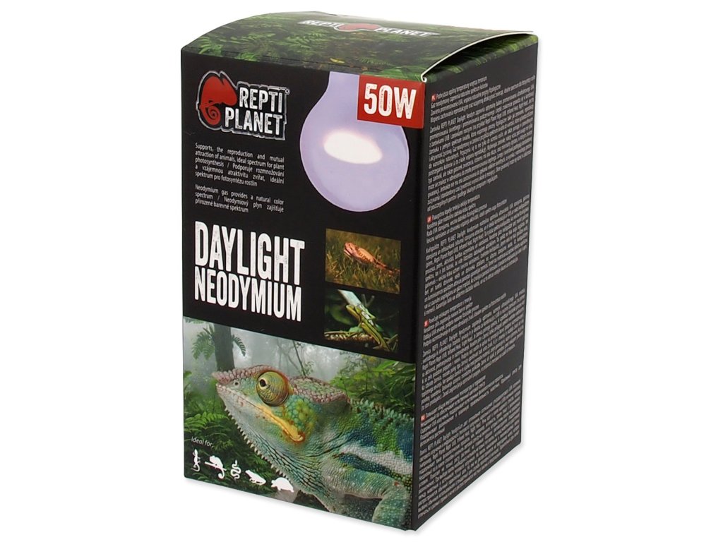 Žárovka REPTI PLANET Daylight Neodymium poskytuje optimální poměr ultrafialového UVA záření, světelného záření a infračerveného (tepelného) záření a je ideální v kombinaci s UVB a nočními žárovkami (např. Repti Planet Repti UVB, Infrared Heat, Night Heat). Jedná se o širokospektrální žárovku, která podporuje fyziologické procesy jako je např. aktivita, příjem potravy a rozmnožování. Neodymiový plyn v žárovce dokáže upravit světelné spektrum na hodnoty, které jsou velmi podobné přírodním podmínkám. Napomáhá to nejen růstu rostlin, ale především vnímání barev (podporuje rozmnožování).