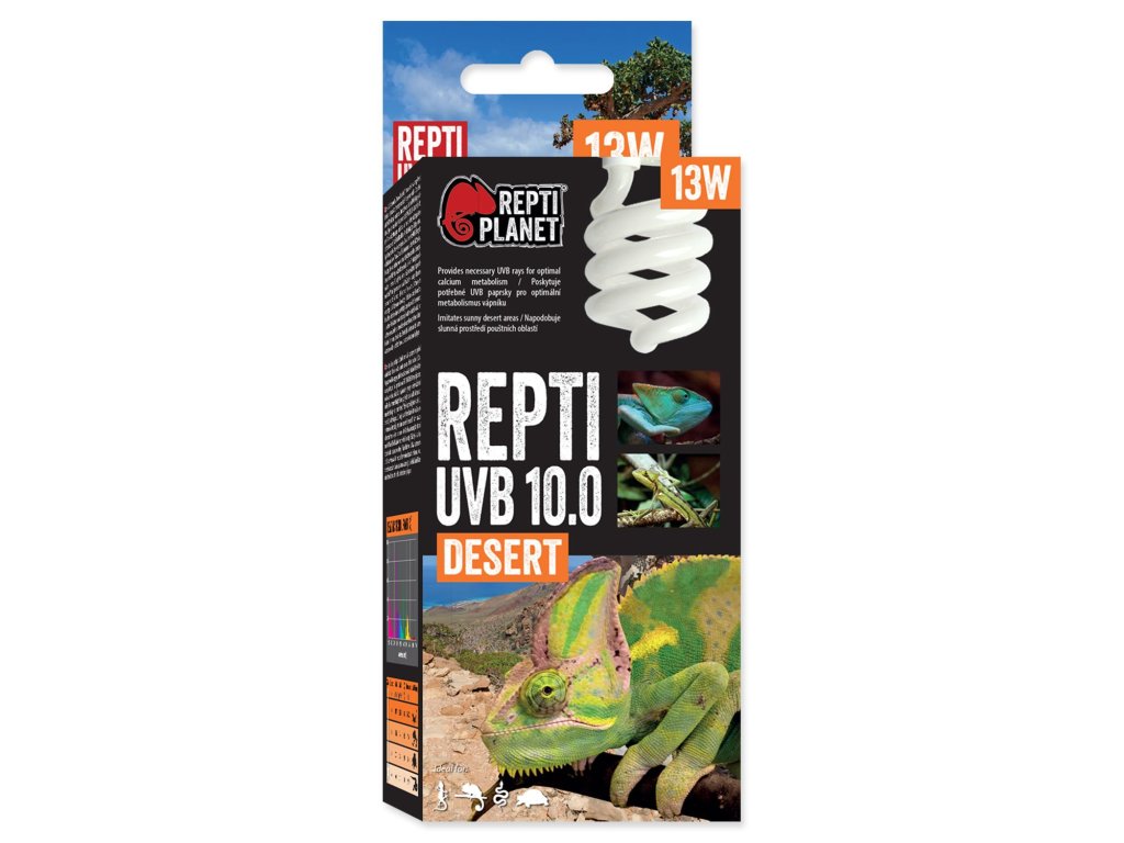 REPTI PLANET UVB 10.0 nevyzařují dostatek tepelného a světelného záření. V případě potřeby kombinujte s výhřevnými a světelnými žárovkami (např. Repti Planet Infrared Heat, Daylight Basking Spot, Daylight Frosted, Daylight Neodymium, Far Infrared Heat nebo Night Heat).