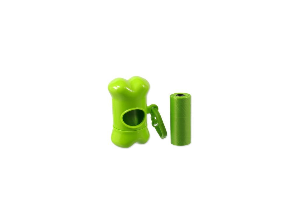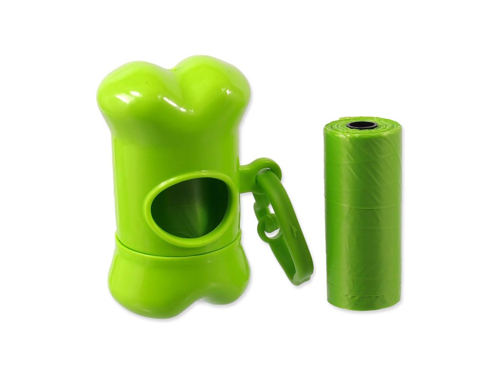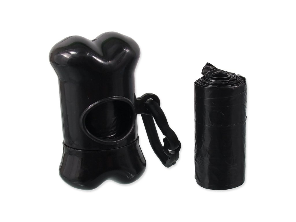 Plastový zásobník na sáčky na psí exkrementy se dvěma rolemi v balení.