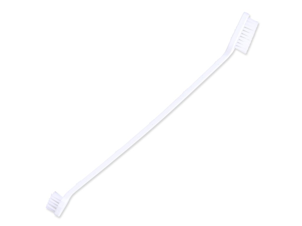 Sada obsahuje zubní pastu s mátou, zubní kartáček na prst, masážní kartáček a kartáček se dvěma různě velkými hlavami. Větší hlava se používá na přední zuby a menší na stoličky.